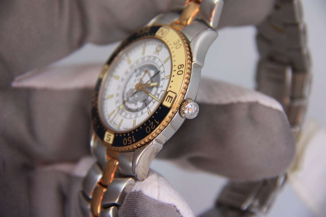 Циферблат с 24-часовой разметкой для использования часов в качестве солнечного компаса. Функция солнечного компаса: часовая стрелка направляется на солнце, при этом компас на внутреннем диске показывает стороны света.