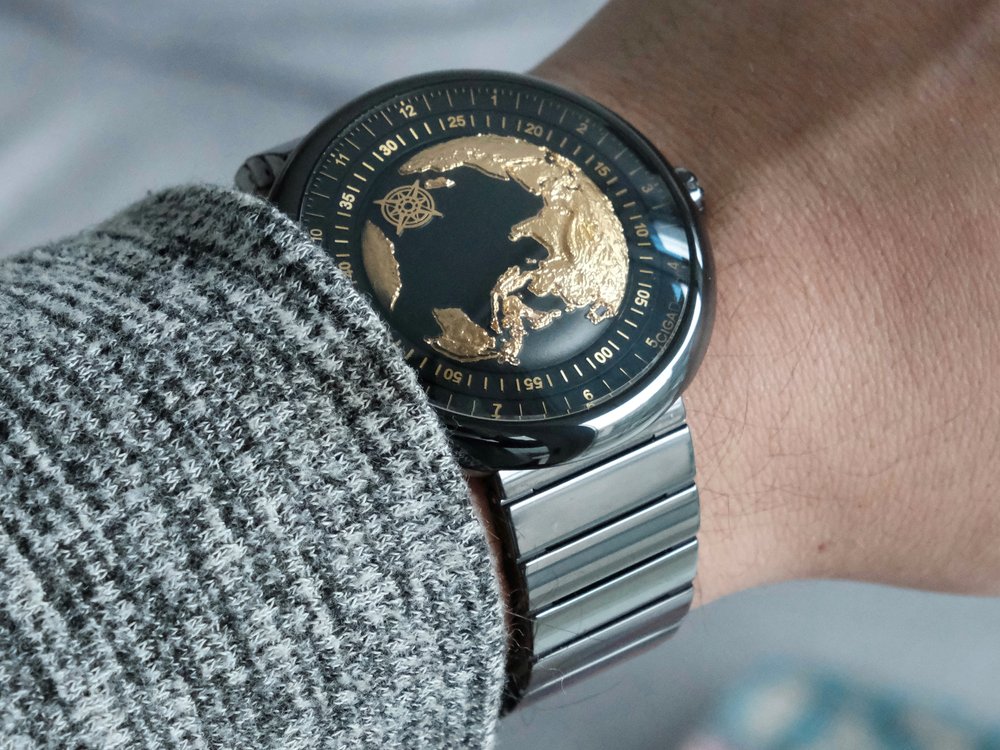 Выскажусь как владелец данной модели в стальном варианте (есть и титан) - качество часов просто отличное, циферблат выполнен рельефно - это самая главная фишка эти часов - можно его долго разглядывать под разными углами и просто любоваться. Очень приятный глазу синий цвет «океана» , на солнце даже слегка переливается своим оттенком, а континенты прямо сверкают. Кольца для считывания времени с часовыми и минутными метками очень четко и рельефно сделаны, но будут мелковаты, если есть проблемы со зрением.