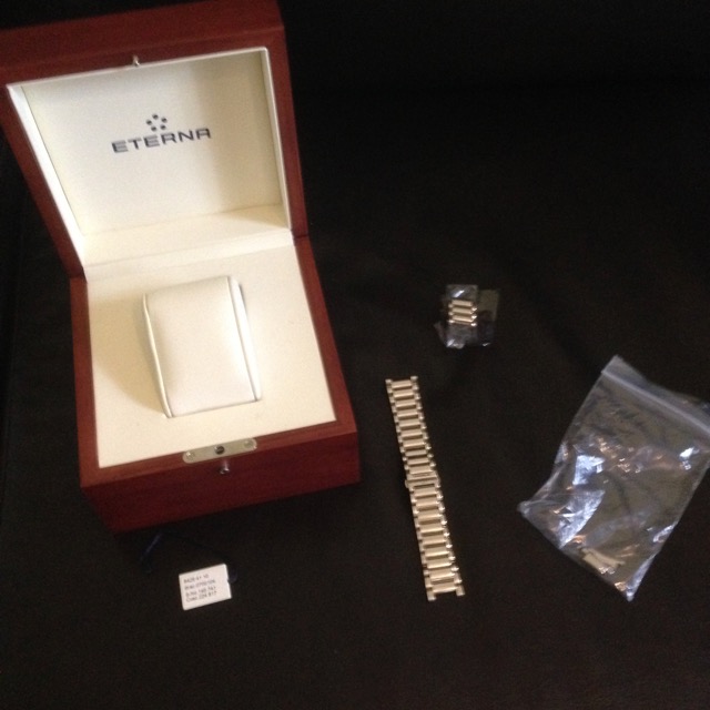 Полный комплект: часы, браслет, коробка, шкатулка, инструкция, талон.
