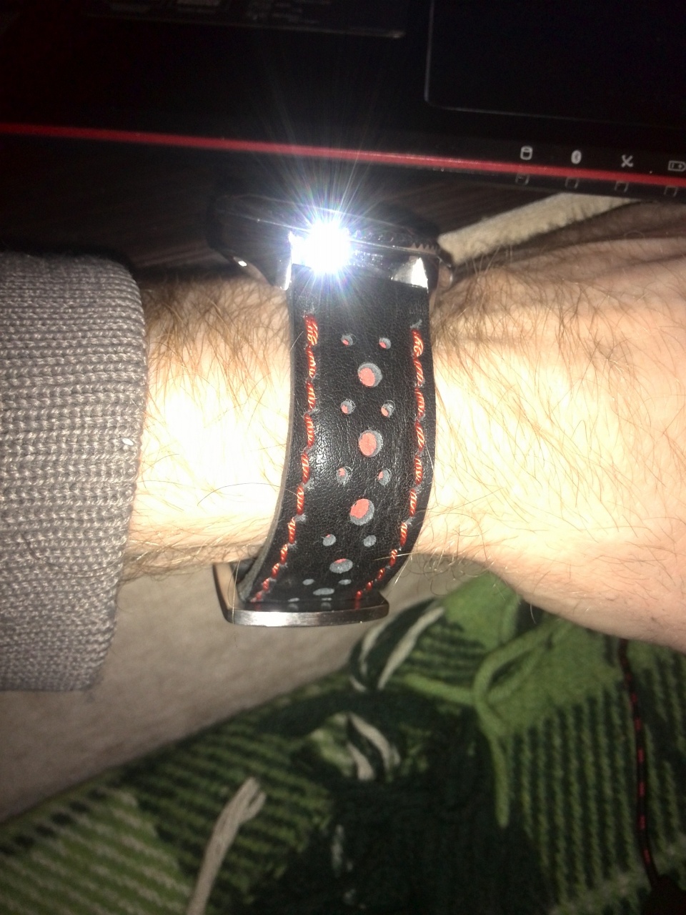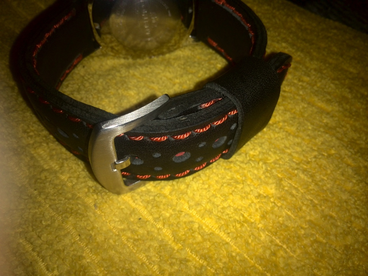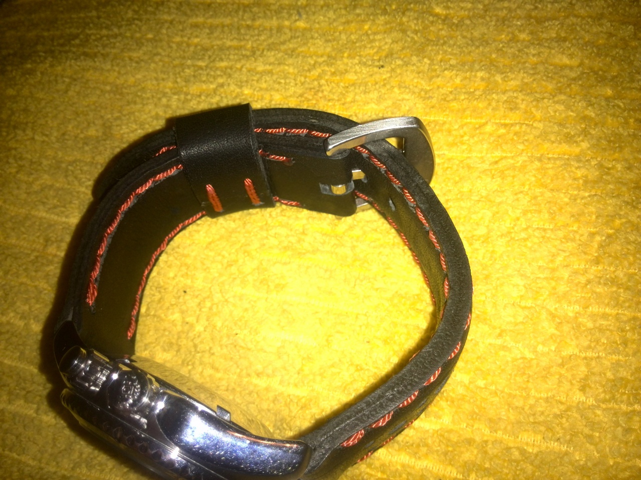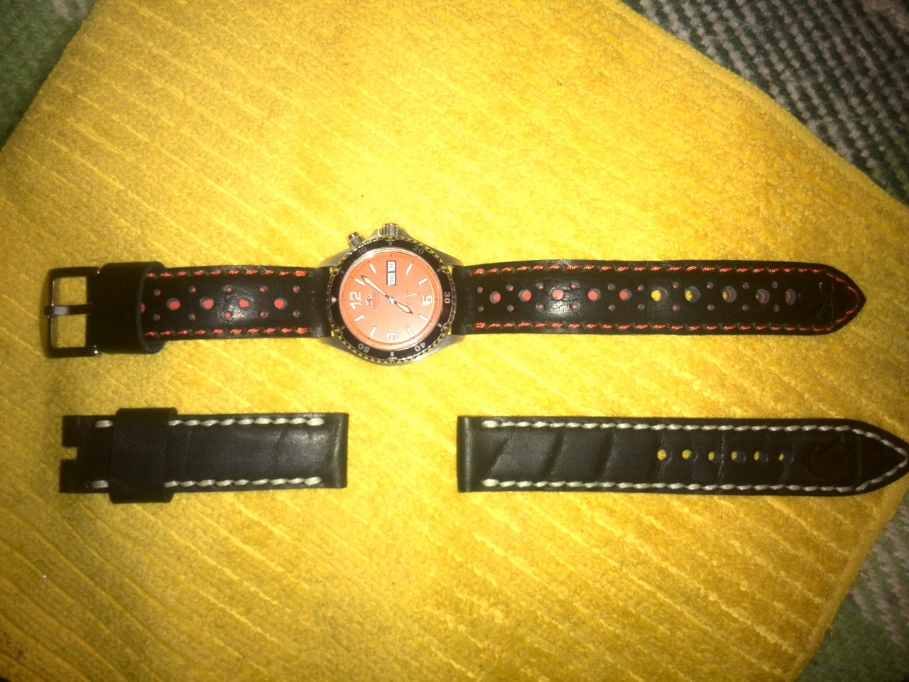 Уважаемые форумчане! Продаются 2 ремешка ручной работы на 22мм . Чёрный с красной прострочкой и перфорацией ТТХ 137 и 78мм толщина 3мм в средней части 4мм. Чёрный с белой прострочкой ТТХ 140 и 82мм толщина такая же. Прошиты капроном и вощёной нитью DAFNA . Ремешки плотные из хорошей кожи изготовлены и прошиты полностью вручную. Цена по 750р без бакли или 1000р с баклей. Любые вопросы в личку.