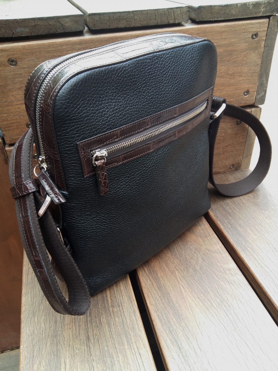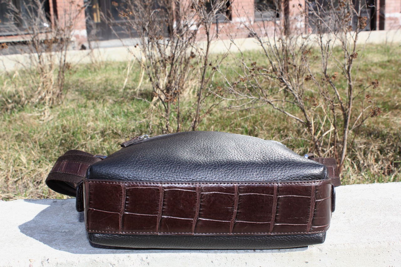 Черная мужская сумка на плечо, из оленьей кожи и крокодила. Италия
