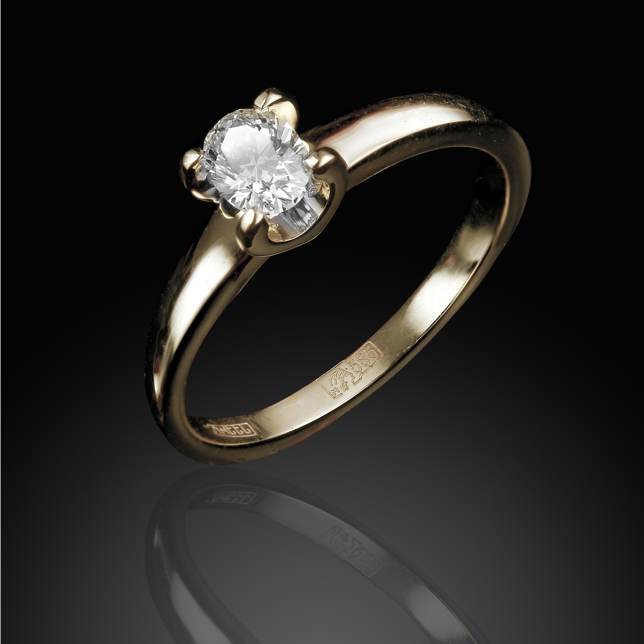 Кольцо из желтого золота с бриллиантом 0,38 карат (сертификат GIA)