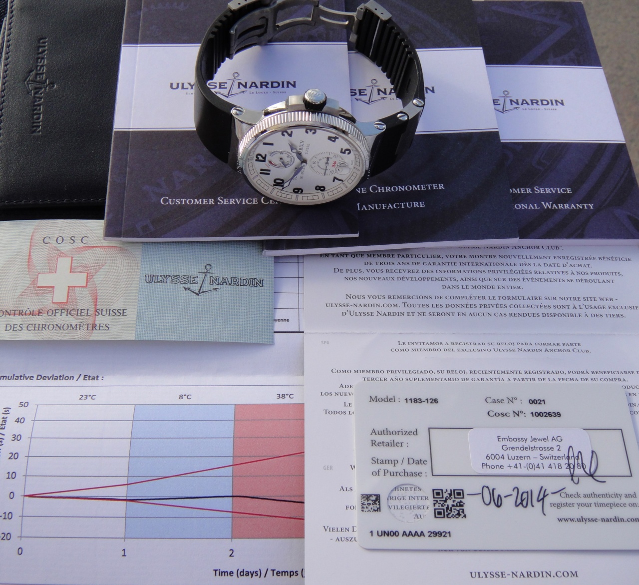 По просьбе Уважаемого Форумчанина, нашего Постоянного Покупателя, выставляем для продажи(обмена) замечательные часы: ПОЛНОСТЬЮ МАНУФАКТУРНУЮ МОДЕЛЬ 1183-126 MARINE CHRONOMETER от компании Улисс Нардин