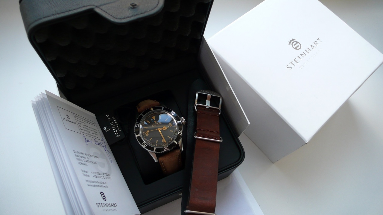 К продаже предлагается отличный и красивейший дайвер оригинального швейцарского производства Steinhart Ocean One Vintage. Часы в отличном техническом и косметическом состоянии. Нет ни царапин, ни потертостей. В эксплуатации были всего несколько месяцев. Оснащены автоматическим механизмом ST5 с запасом хода в 42 часа. Водозащита 300 метров. Диаметр часов 42мм. Особую красоту часам придаёт купольное сапфировое стекло. Стрелки, цифры и часовые метки покрыты составом Luminova, светящимся а темноте. Часы в полном заводском комплекте, с двумя кожаными ремнями.