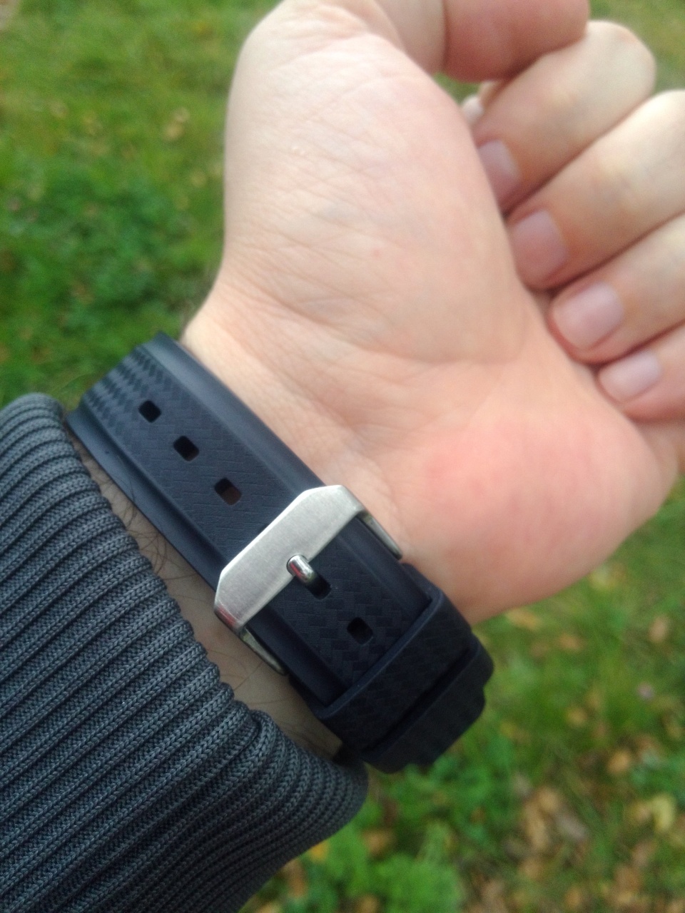 Состояние отличное, ход - без нареканий! Часы на полном комплекте (две коробки, макулатура, незаполненная карта гарантии, браслет полный). Сейчас на часы установлен ароматизированный каучук (made in Itali) часы смотрятся на нем просто бесподобно... идеальный вариант например в бассейн да и на зиму тоже лучше не придумаешь.. сами часы после легкой полировки а вот брас не полировался, но состояние хорошее. Бонусом к часам отдаю подставку для правильного хранения часов.