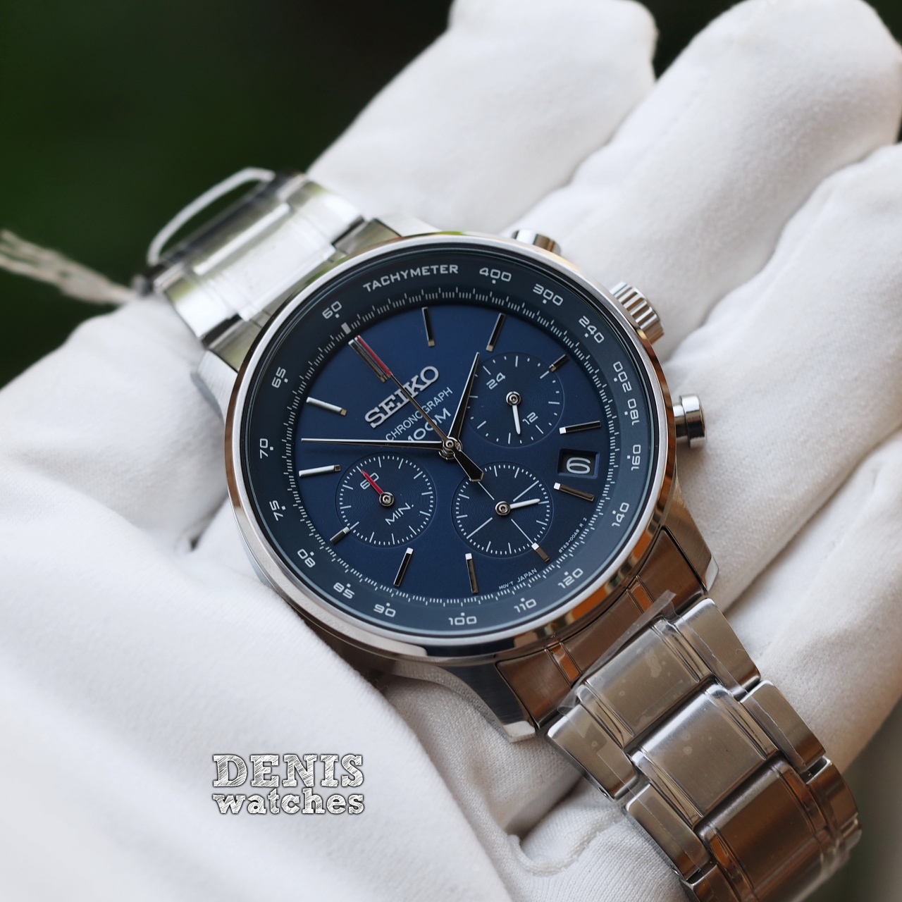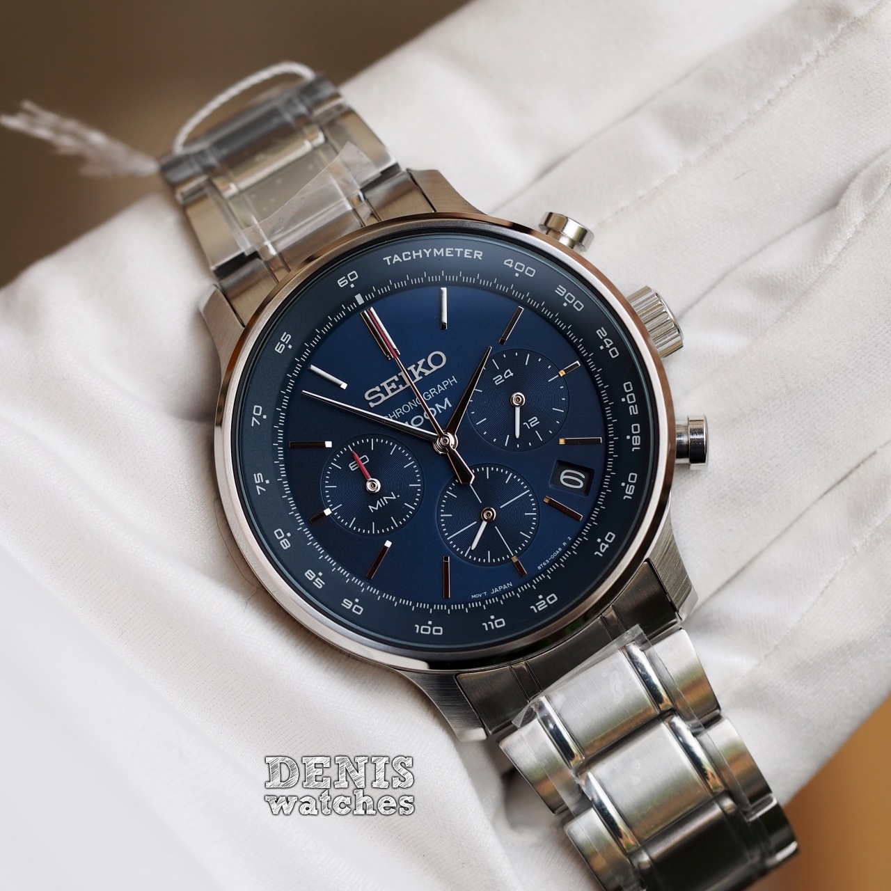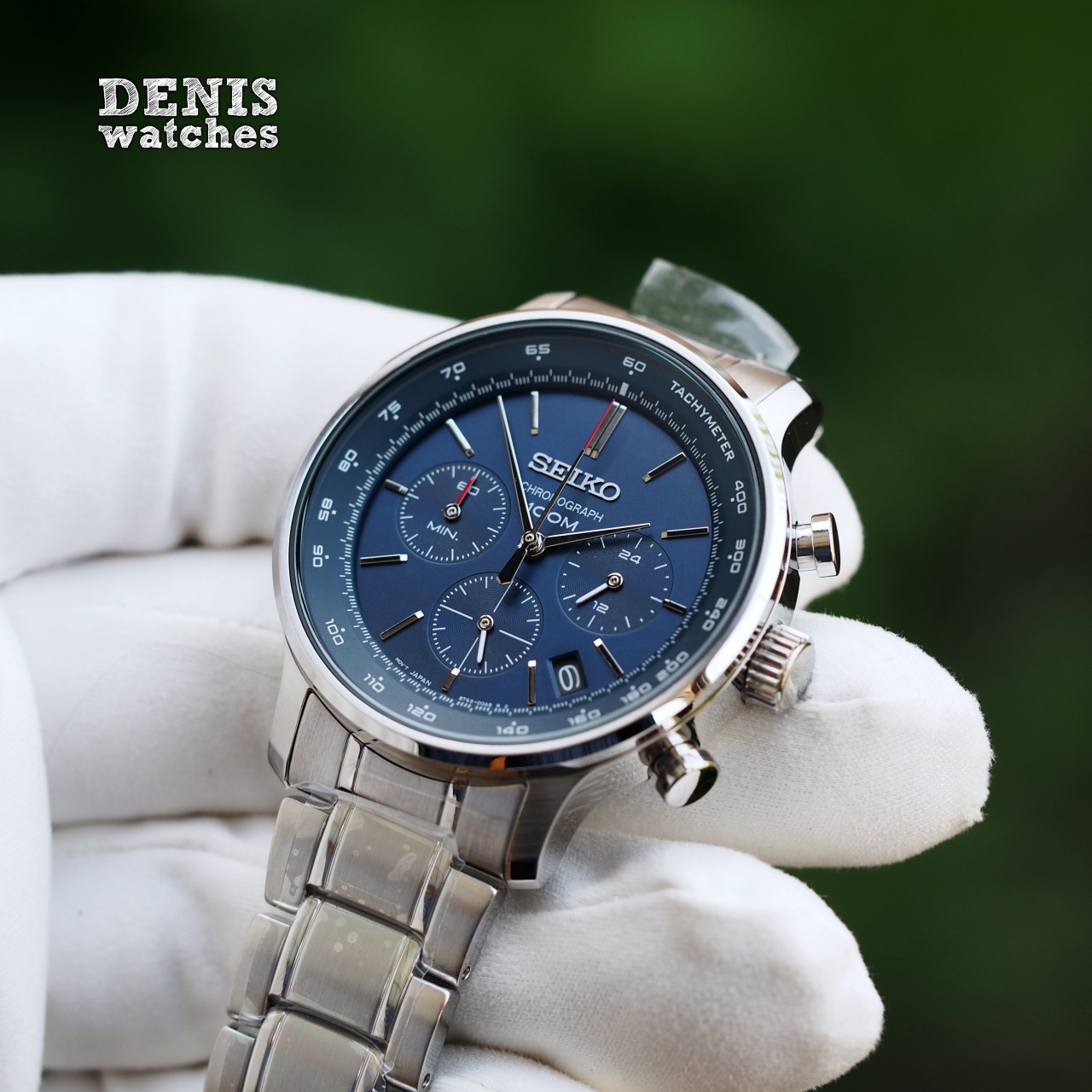 Спортивный хронограф синего цвета на стальном браслете!