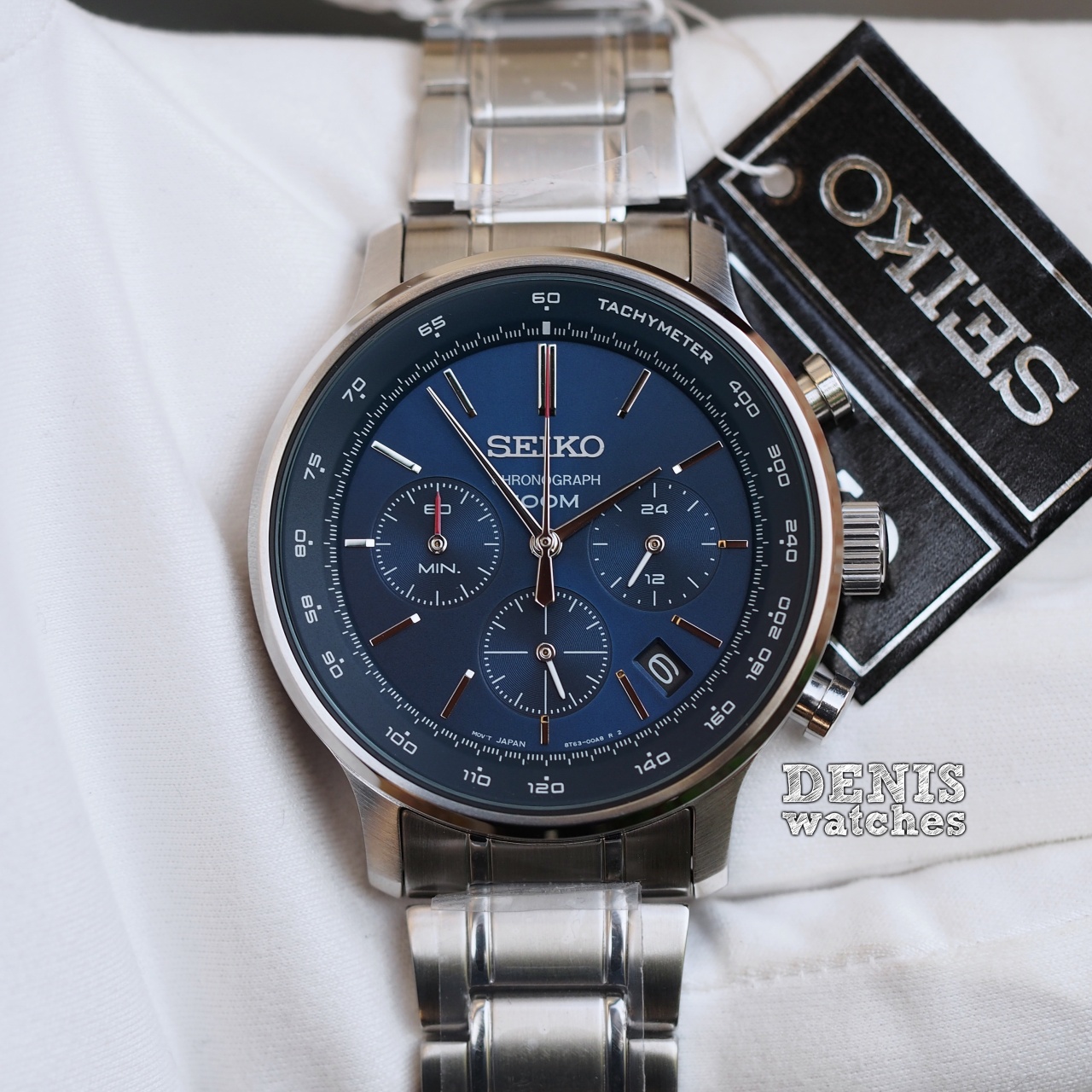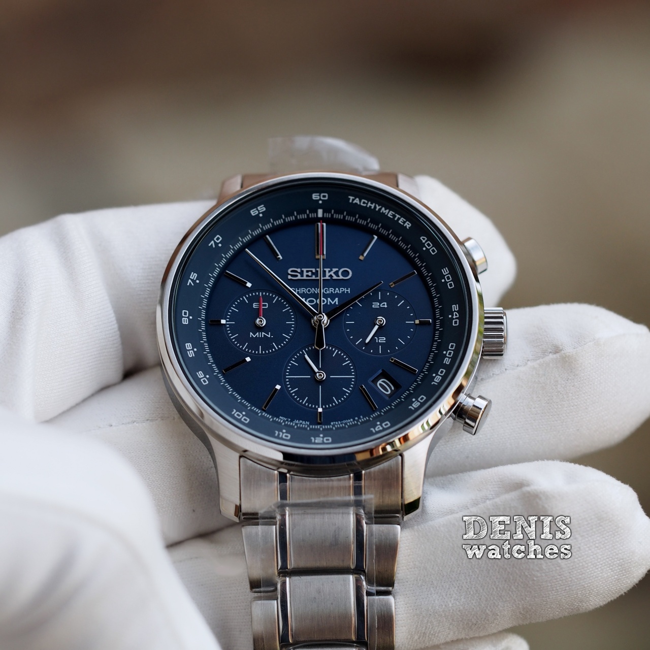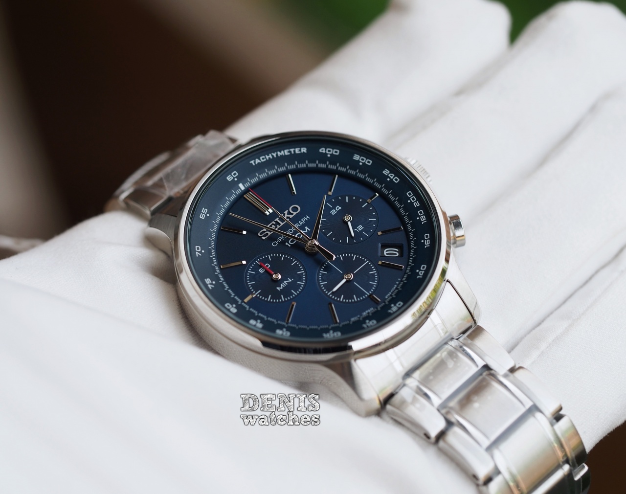 Спортивный хронограф синего цвета на стальном браслете!