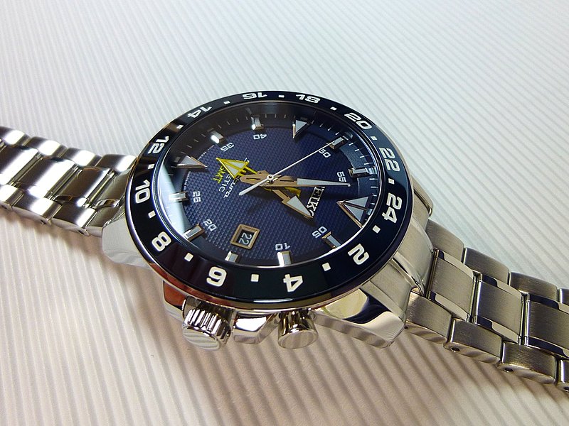 Мужские автокварцевые наручные часы Seiko SUN017P1 с механизмом Kinetic и функцией двойного времени (GMT) коллекции Sportura. Калибр механизма — 5M85. Аккумулятор данной модели заряжается от движения руки. Срок работы аккумулятора с полным зарядом — около 6-ти месяцев. Примерный срок службы аккумулятора — 10 лет. Присутствует функция информирования о недостаточном заряде и индикатор запаса энергии. Максимально допустимая погрешность точности хода +15/-15 секунд в месяц. На данной модели отображается дата. Сапфировое стекло. На безель часов нанесено PVD покрытие. Стрелки и цифры покрыты люминесцентным напылением LumiBright (светятся в темноте). Прозрачная завинчивающаяся задняя крышка часов и заводная головка. Водонепроницаемость WR100 (10 атм).