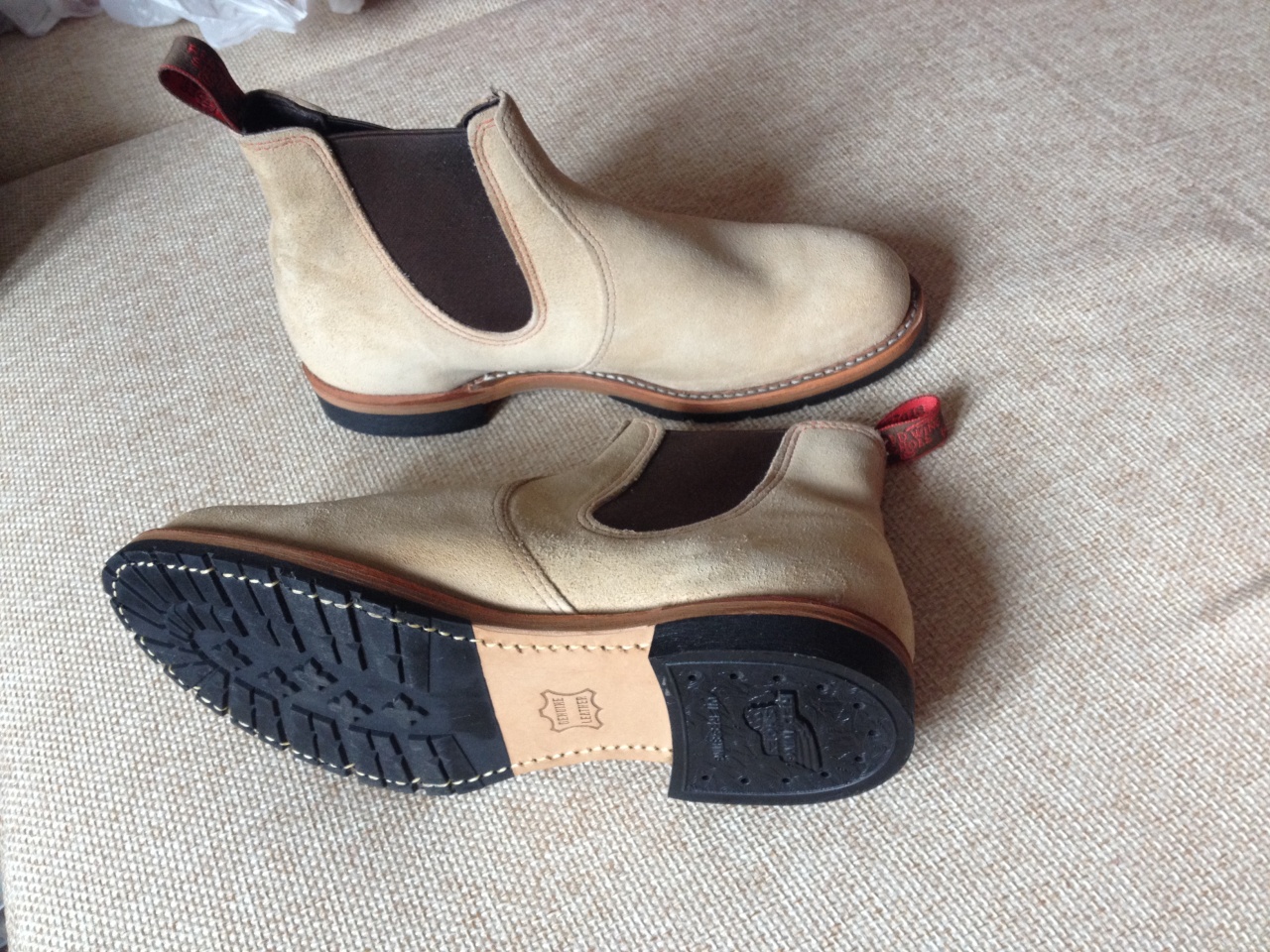 Верх ботинка выполнен из 100% замши, обработанной специальным маслом и воском, что делает обувь водонепроницаемой и износостойкой. Язычок на пятке и боковые вставки позволяют без лишних усилий надевать и снимать ботинок.