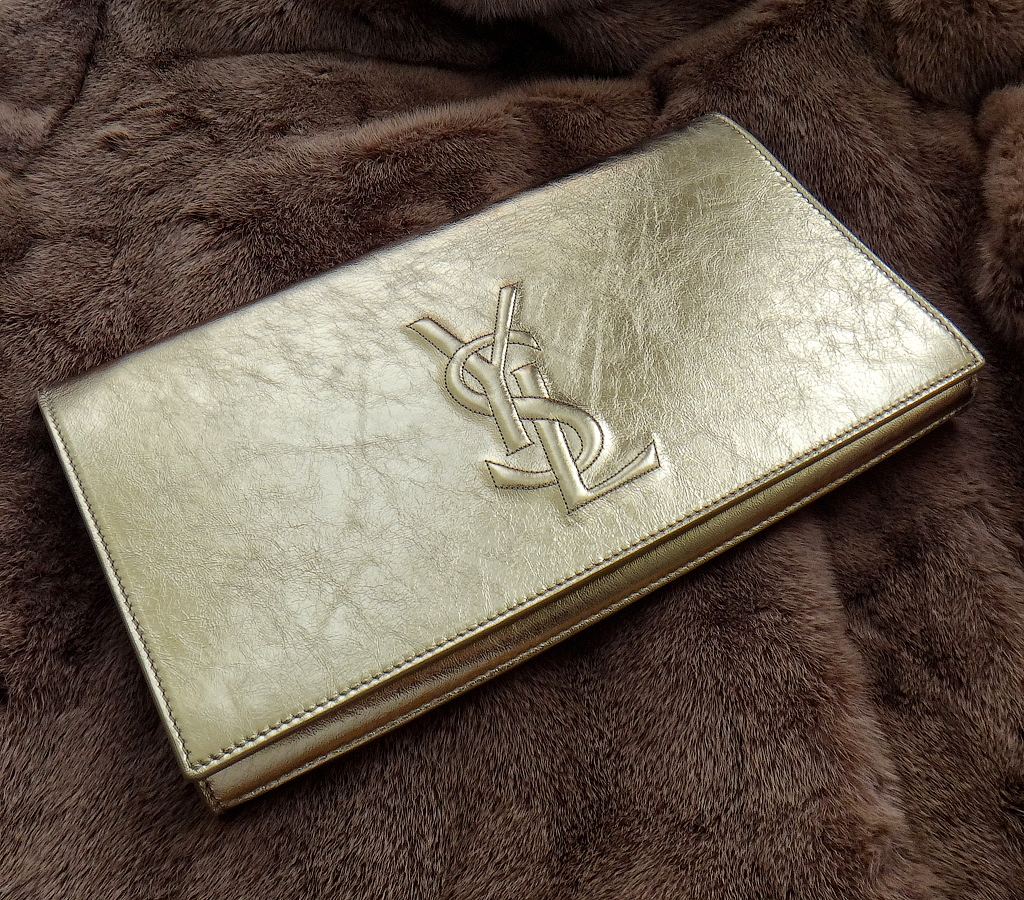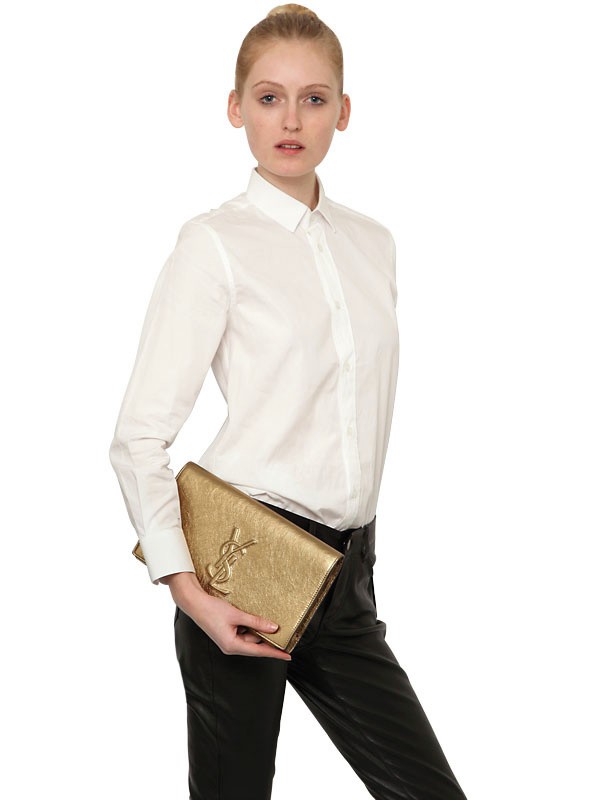 SAINT LAURENT роскошный крупный клатч, золотого цвета, кожа кенгуру!