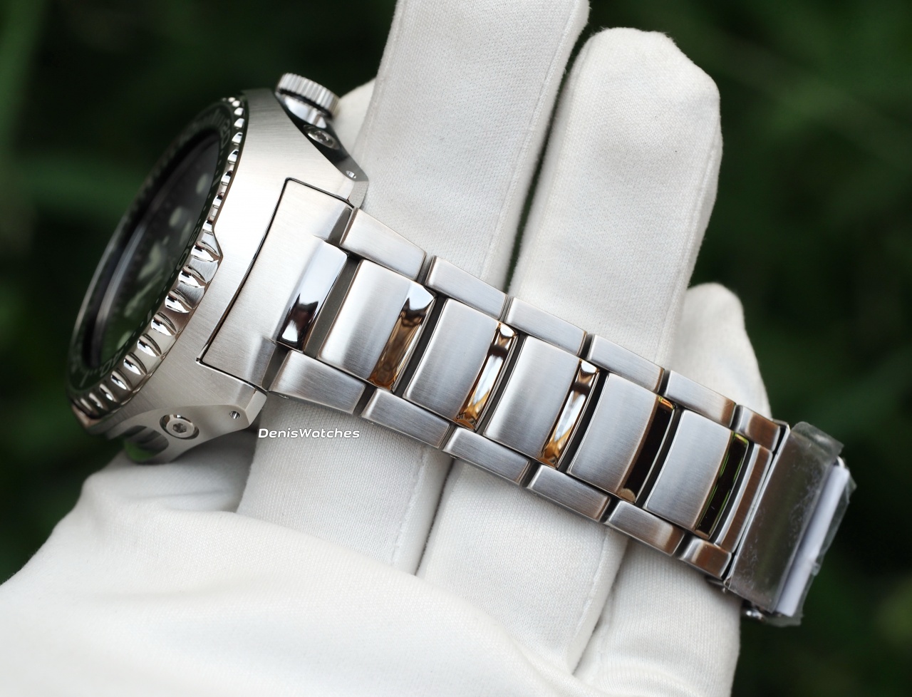 Стальной корпус с мощным литым защитным ТУНА-кожухом, как на внутрияпонских дайверах серии MarineMaster, все выполнено в практичном сатине