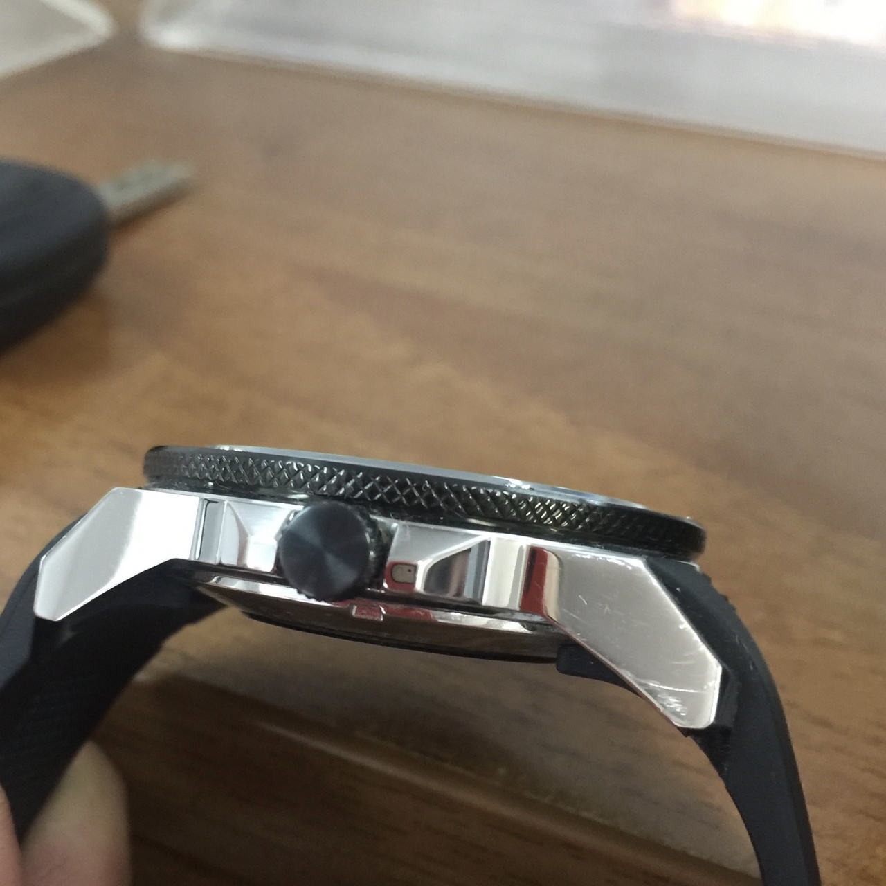 Сорри, но я не понимаю, как наличие потёртости (на фото) может указывать на то, что часы подвергались какому-то недопустимому (?) воздействию. А мне было заявлено об этом безальтернативно на десятой секунде разговора. Это — первое.