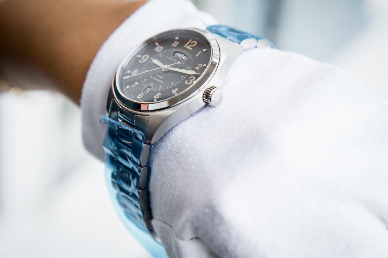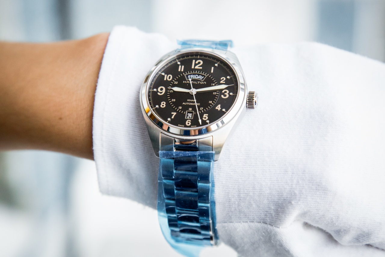 В модели Khaki Field Day Date совмещены милитари тематика линейки Khaki с точностью швейцарских механизмов, выраженной в исключительном калибре H-30 с запасом хода 80 часов..