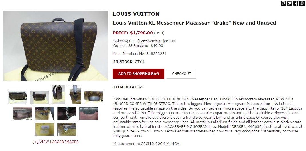 Лимитка, модель из сезонной коллекции. Одна из самых вместительных сумок-мессенджеров, и одна из самых дорогих сумок в канве Monogram Macassar.