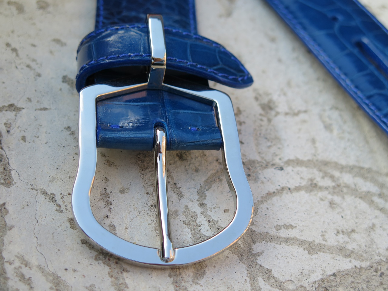 Прямоугольная пряжка запатентованной конструкции изготовлена из никеля, покрытого палладием.