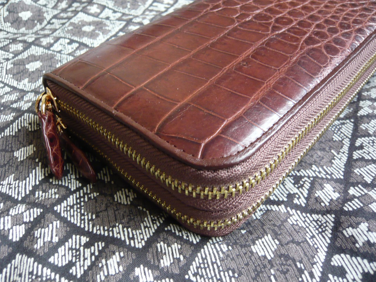 БОЛЬШОЙ МУЖСКОЙ КЛАТЧ из кожи крокодила, коричневый цвет.