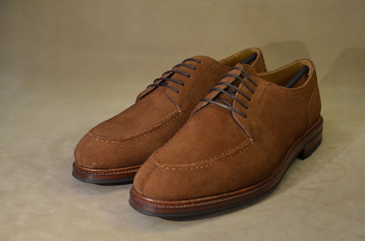 Верх - замша Repello Calf Suede от дубильни Charles F. Stead. Подкладка - полная, из телячьей кожи хромового дубления. Стелька из кожи растительного дубления, резиновая подошва, Goodyear welted 360. U-образный шов по периметру союзки выполнен вручную.