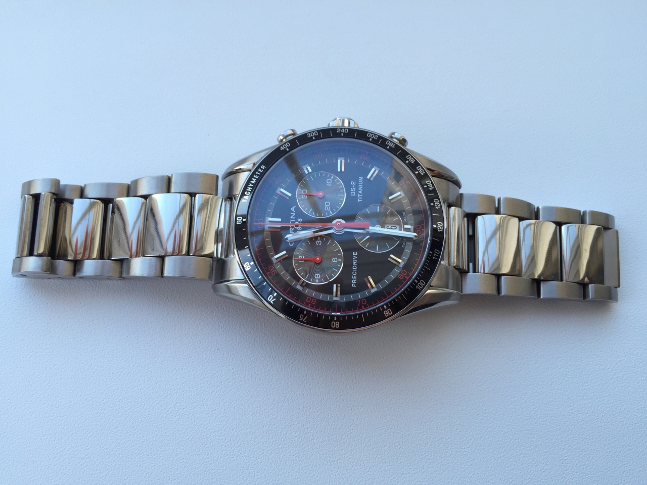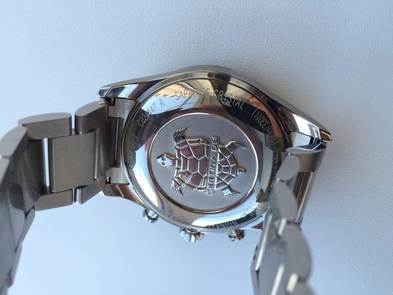 Часы красивые, невесомые и удобные на руке потому, как из титана и 41 – го размера. Завораживающий ход стрелок хронографа, прыгающий час при переводе даты во втором положении, очень мягкая работа кнопок и заводной головки.