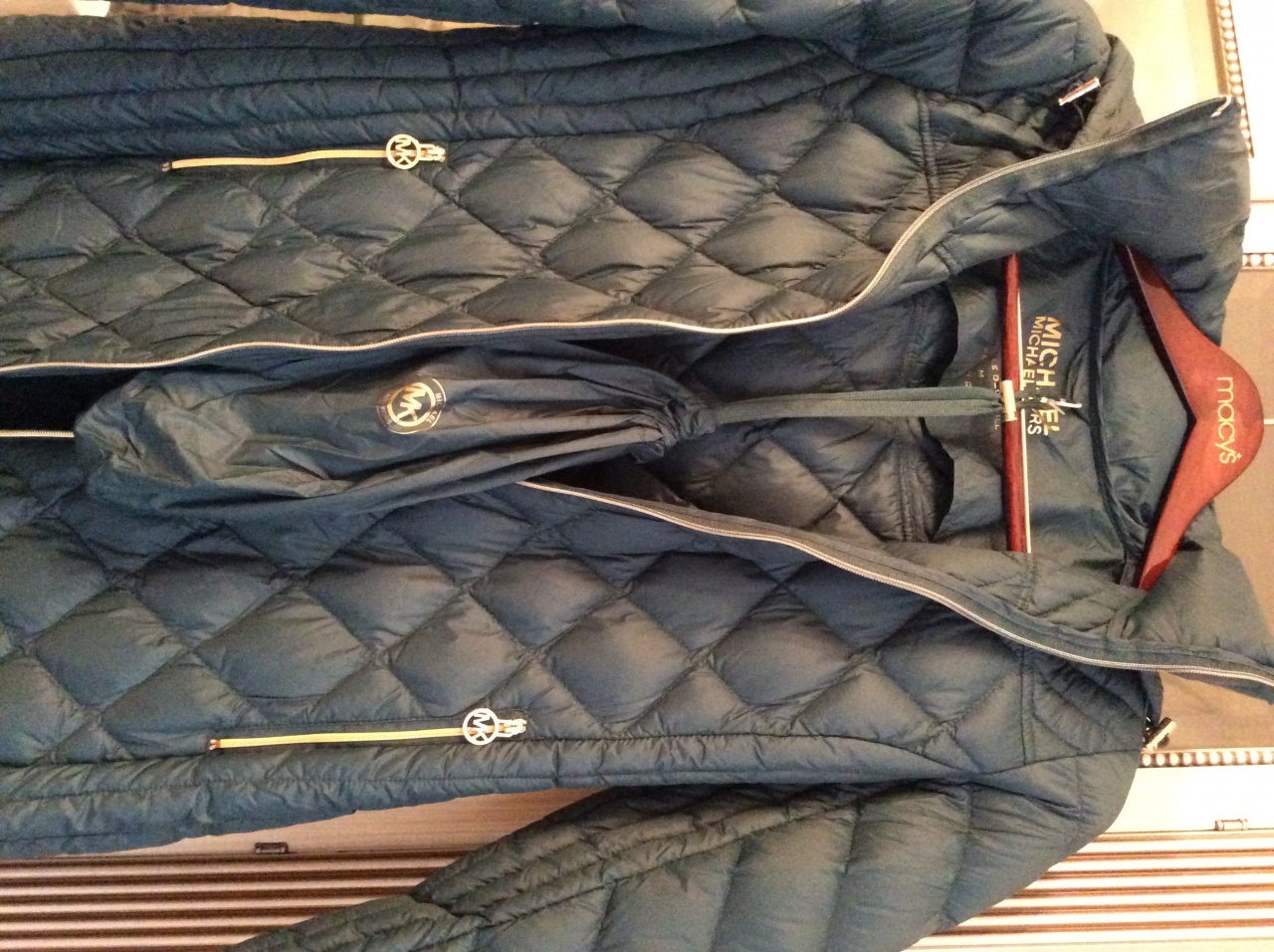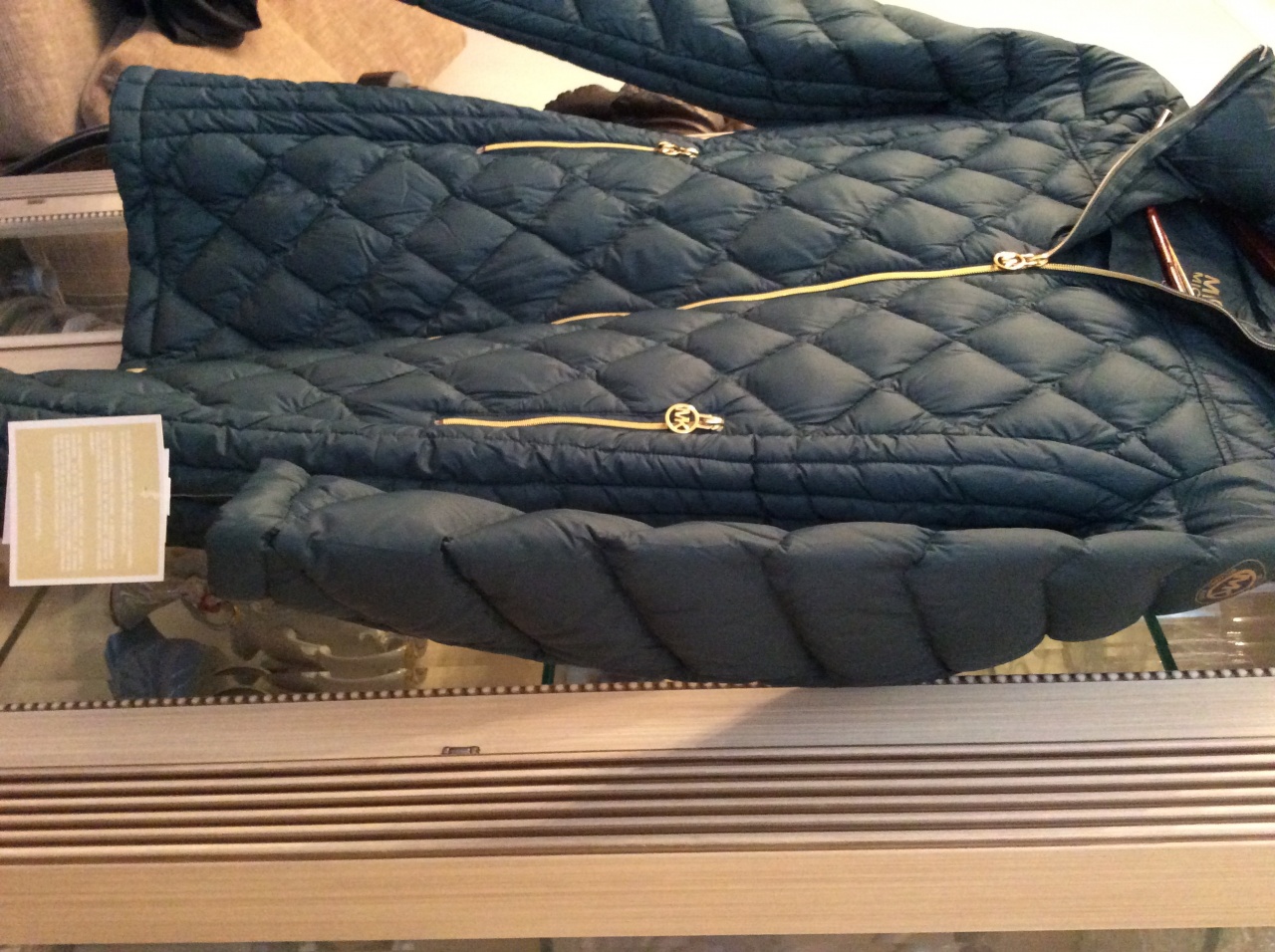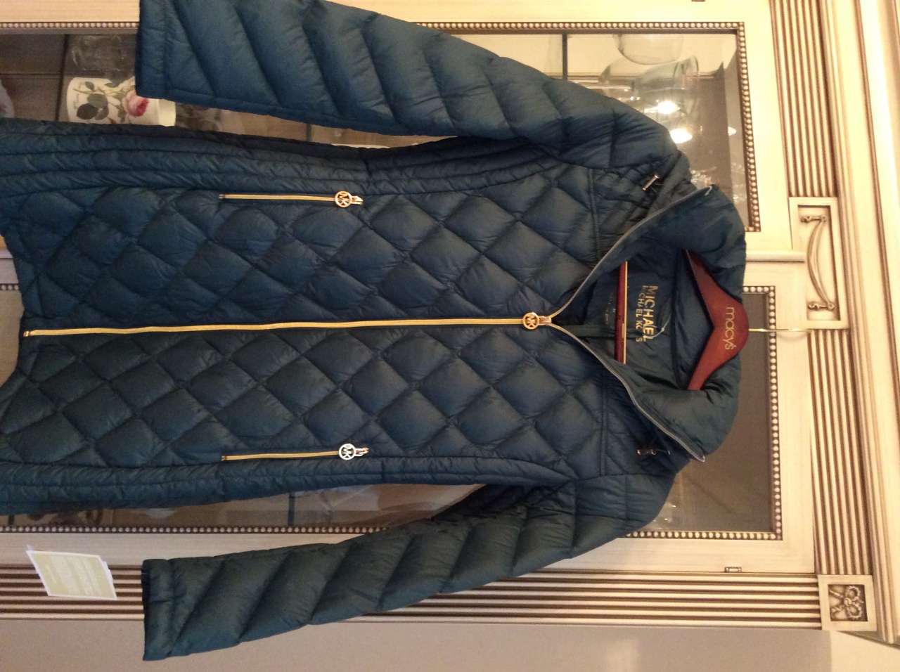 Новый пуховик Michael Kors. Размер американский М (46-48 рос.). Очень красивый травяной темно-зелёный цвет (на фотографиях не получился). Длина по спине 85 см, капюшон отстегивается. Пуховик складывается, мешок прилагается. Наполнитель: 90% пух/ 10% перо. Фирменна фурнитура золотистого цвета.
