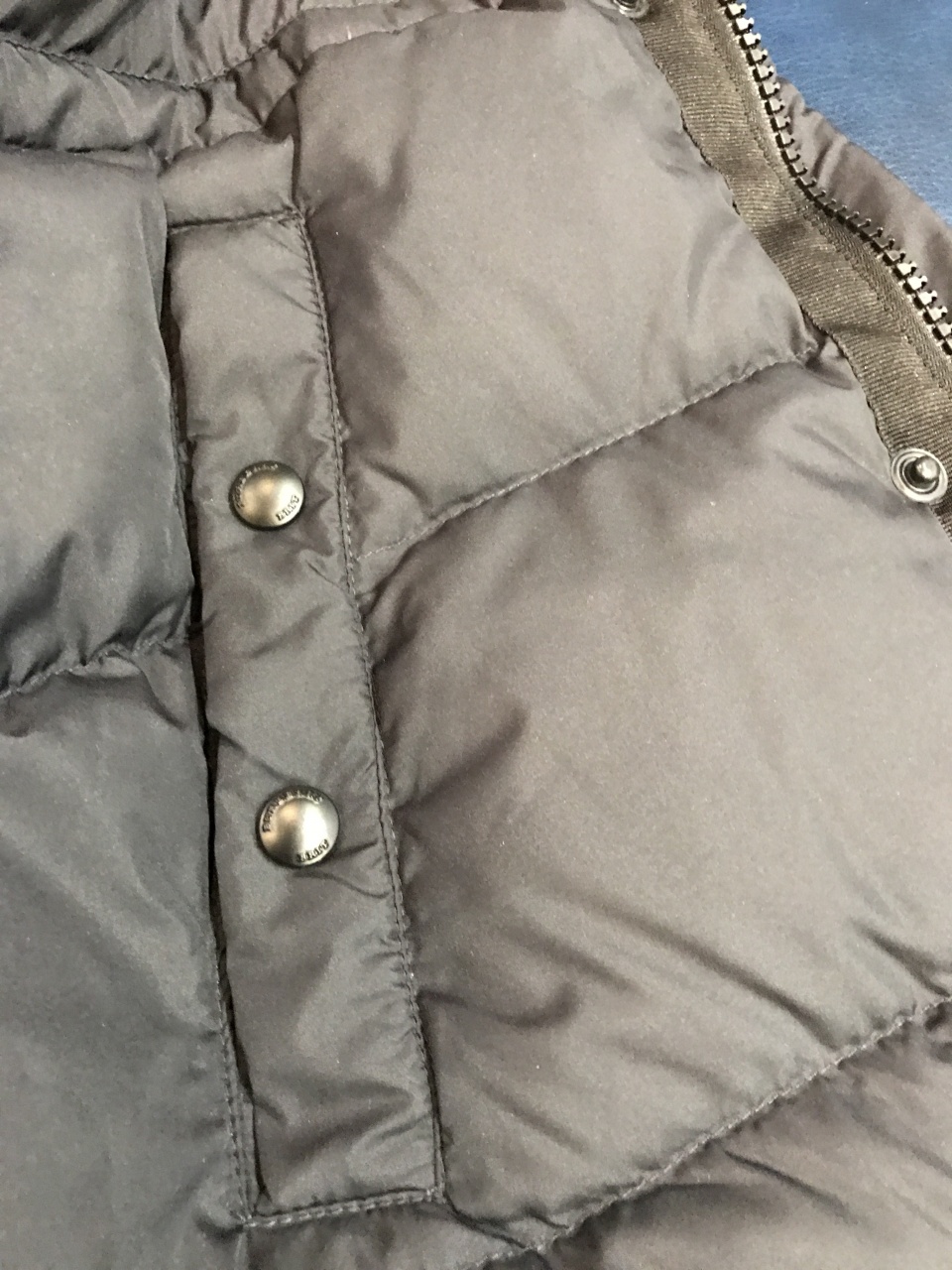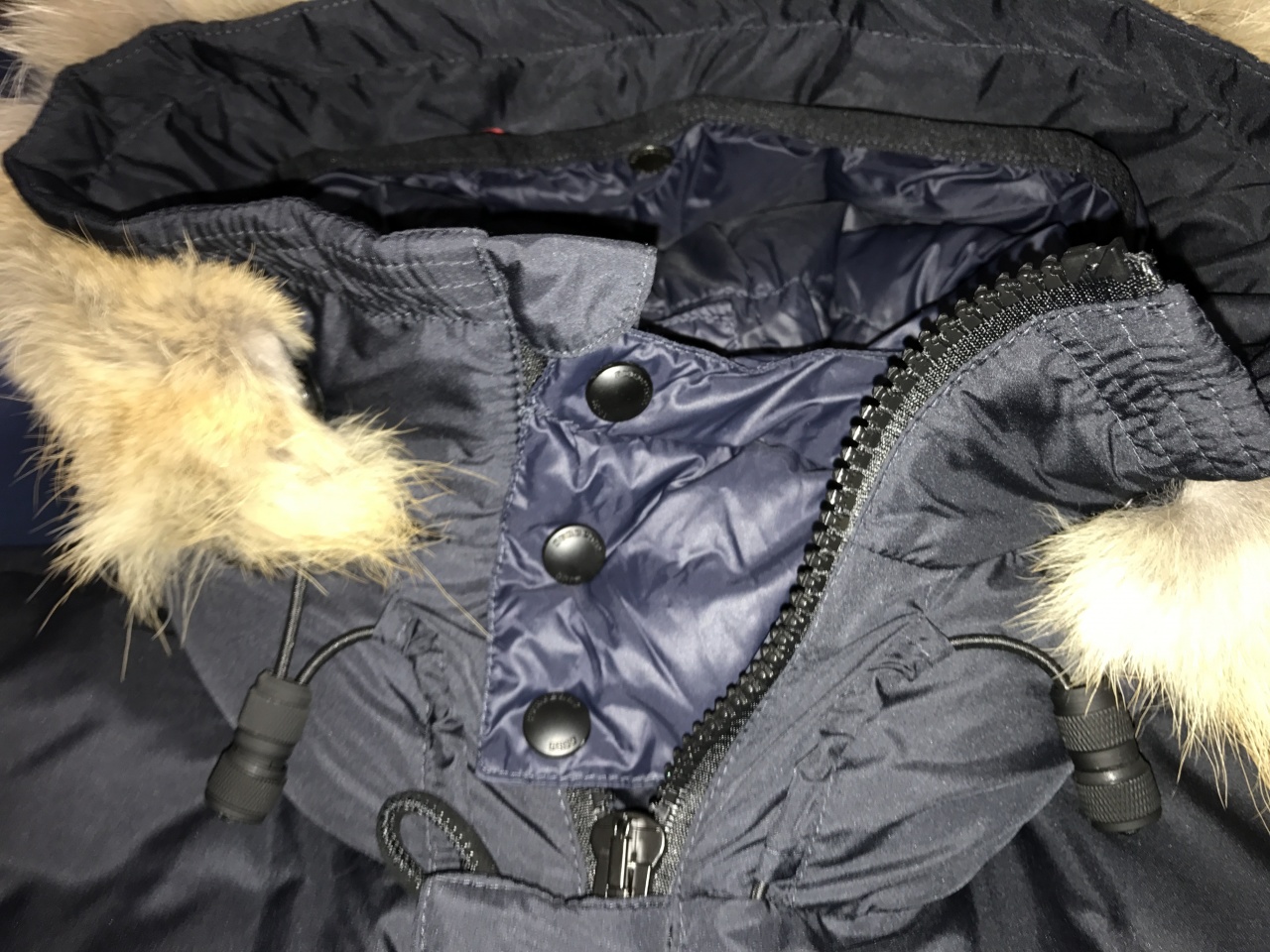 Классический крой, слегка приталенная удлинённая модель, мех отстёгивается, как и сам капюшон. Можно носить как кэжуал и с классическом костюмом.