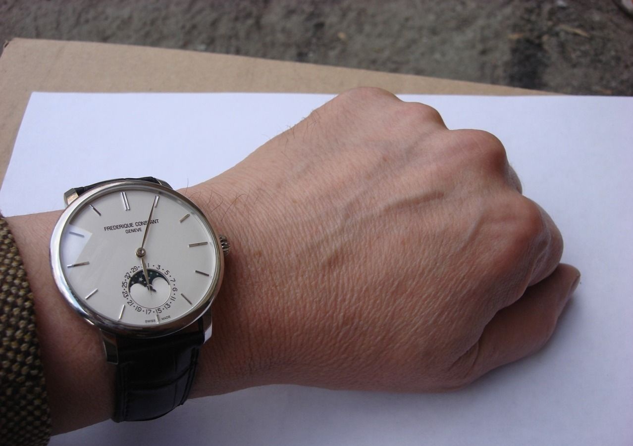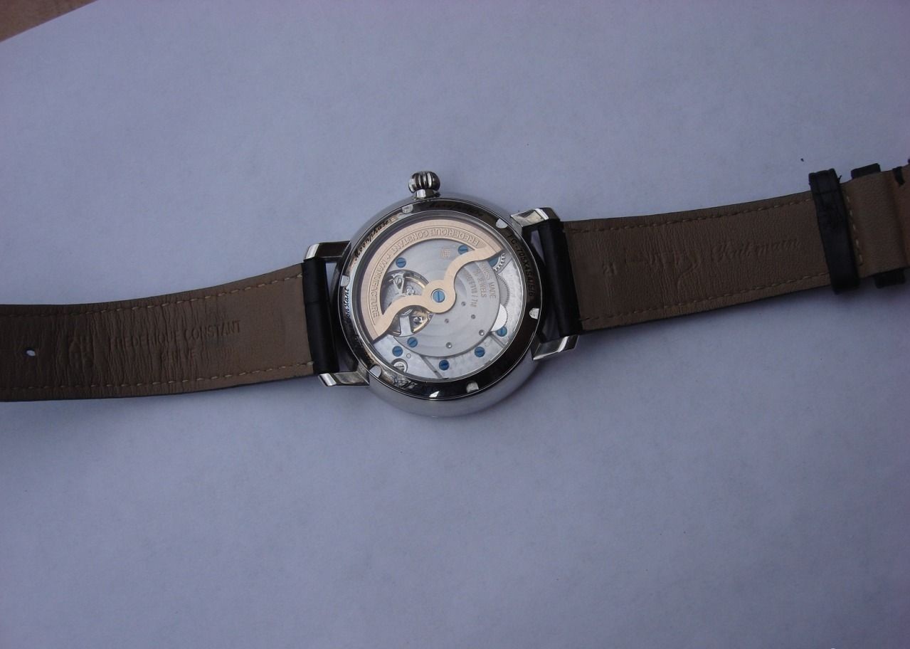 Frederique Constant FC-705S4S6,состояние отличное,новая модель,мануфактурный механизм,механика-автоподзавод,корпус сталь,диаметр 42 мм,сапфировое стекло,антибликовое покрытие,прозрачная задняя крышка,указатель фазы луны и даты.Родной крокодиловый ремешок в отличном состоянии,внутри чистый(бежевый),на фото просто кажется ,что темный.Отличное состояние,может идеальное,носили очень мало,смотрятся очень дорого в живую.Есть статьи про эти часы в интернете,применены новые технологии.Коробка и книжечка.