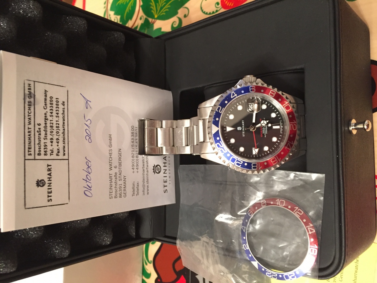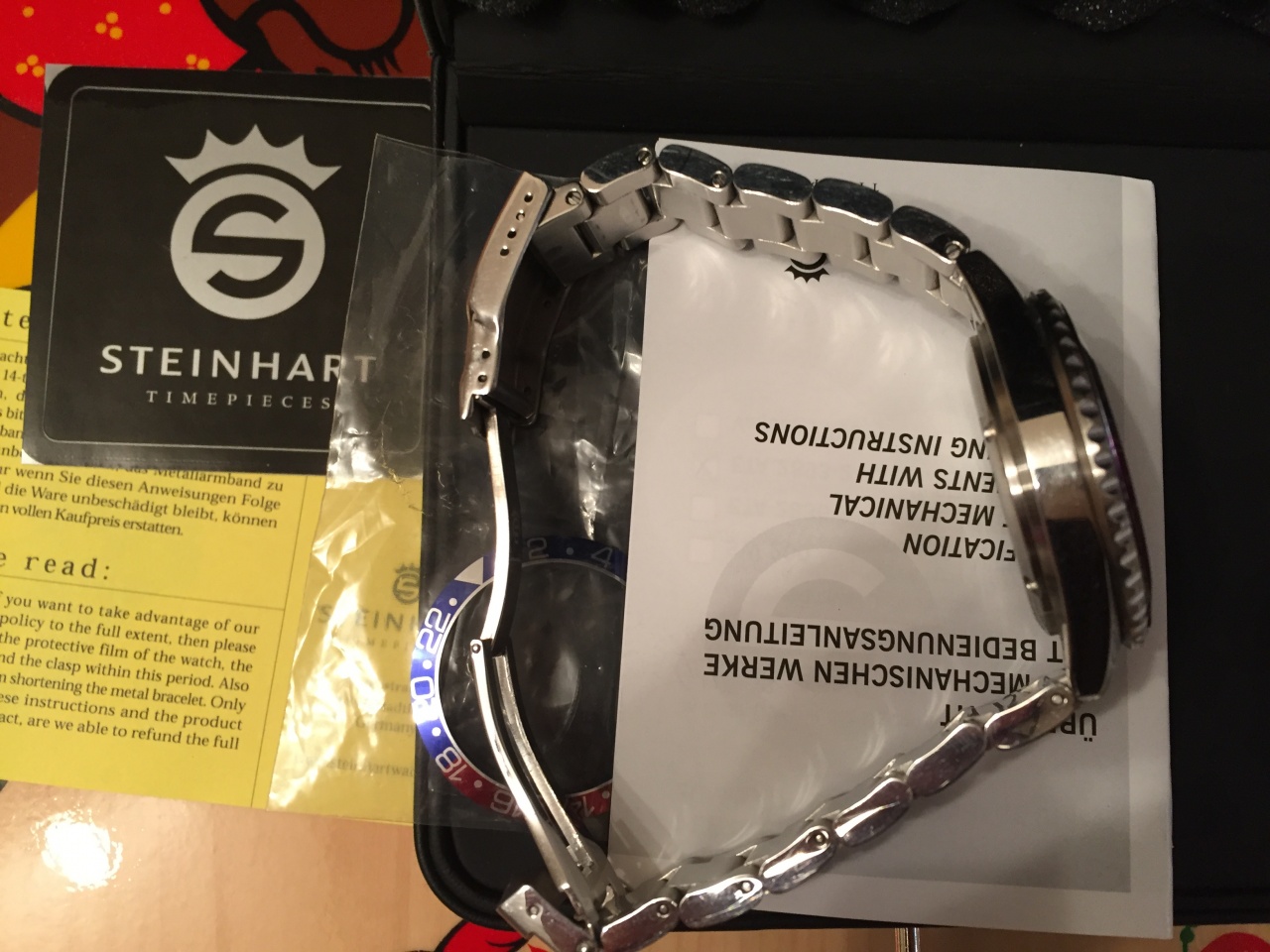 После ровно года ежедневного ношения расстаюсь со своими Штайнами. Данная модель широко известна на форуме. Часы повседневные, носились и в офис по будням, и на природу по выходным. Экстремальных нагрузок не испытывали. Безель на часах оказался очень царапучим, приобрёл второй, отдам вместе с часами, новый. Да и в целом часы царапучие - браслет прилично потёрся о письменный стол, на фото попытался отразить. Точность хода укладывается в +5 секунд, поначалу составляла так и вовсе +1.