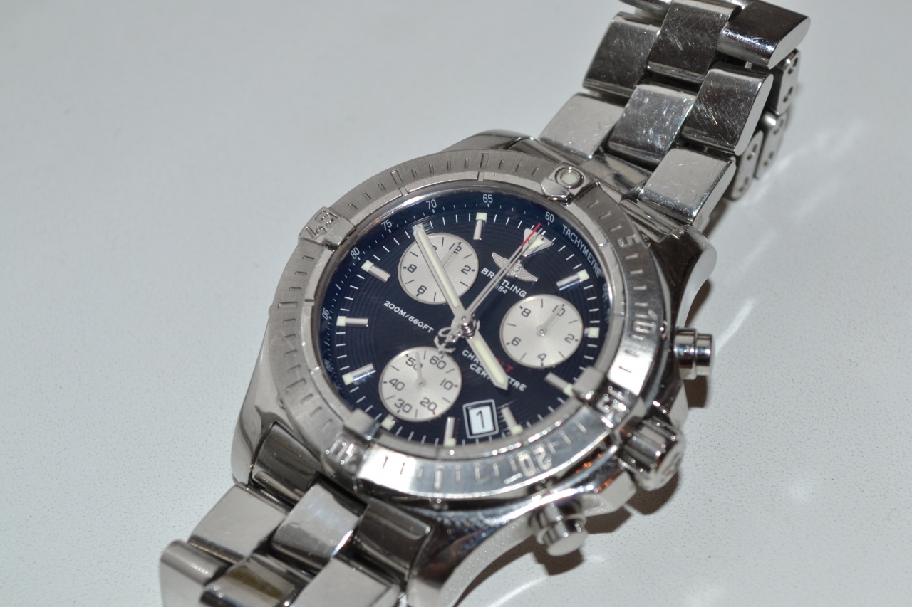 Одна из самых красивых моделей Breitling. Полный комплект со всеми бирками, коробками, бумажками, сертификатами и тд. Естественно оригинал, любые проверки в нормальных мастерских. Претензий к часам нет, идут как положено суперкварцу.