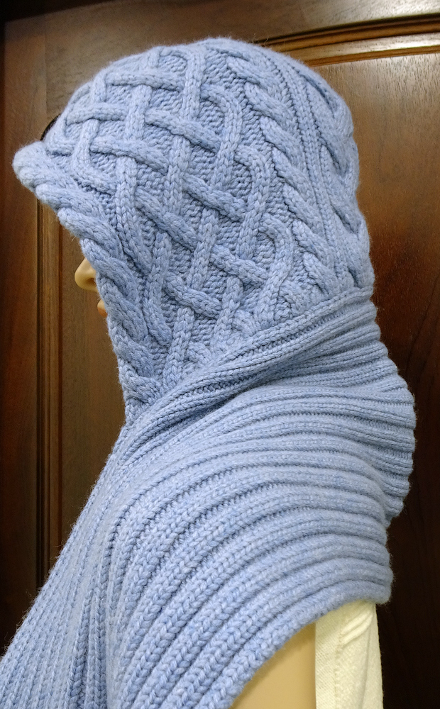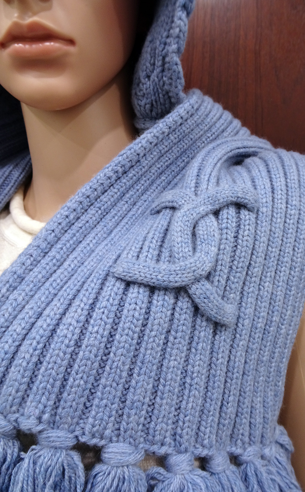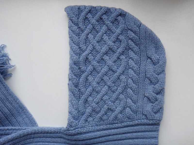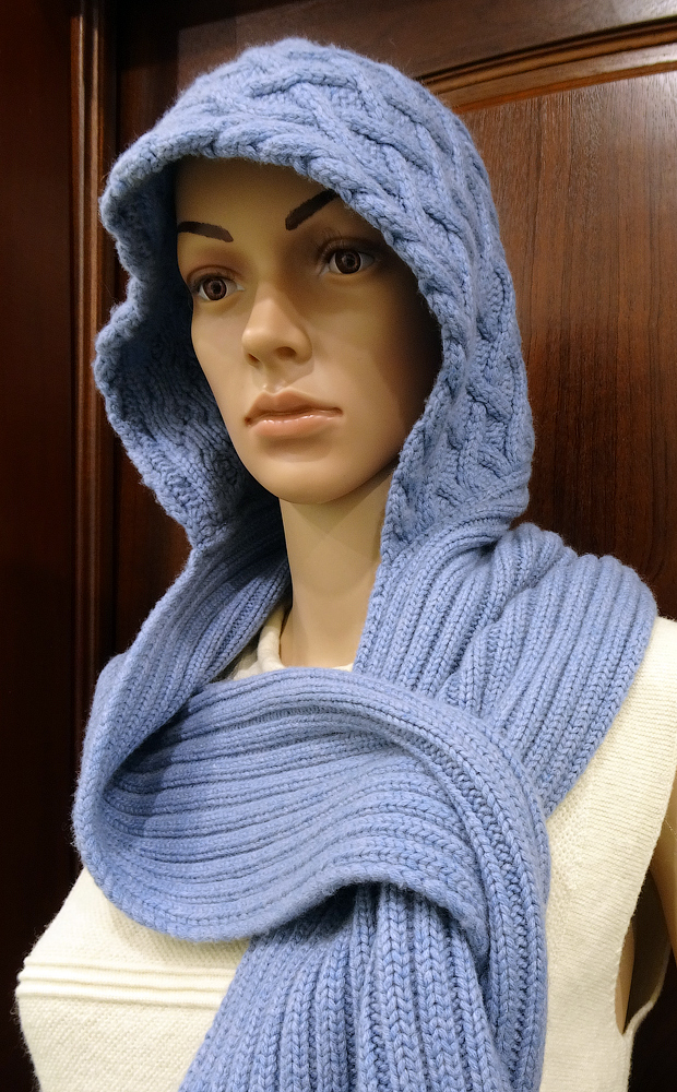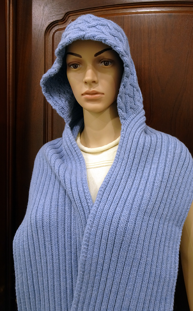 Плечи и спину покрывает практически до лопаток. Очень широкие концы-шарфы позволяют уютно укутаться, как в свитер.