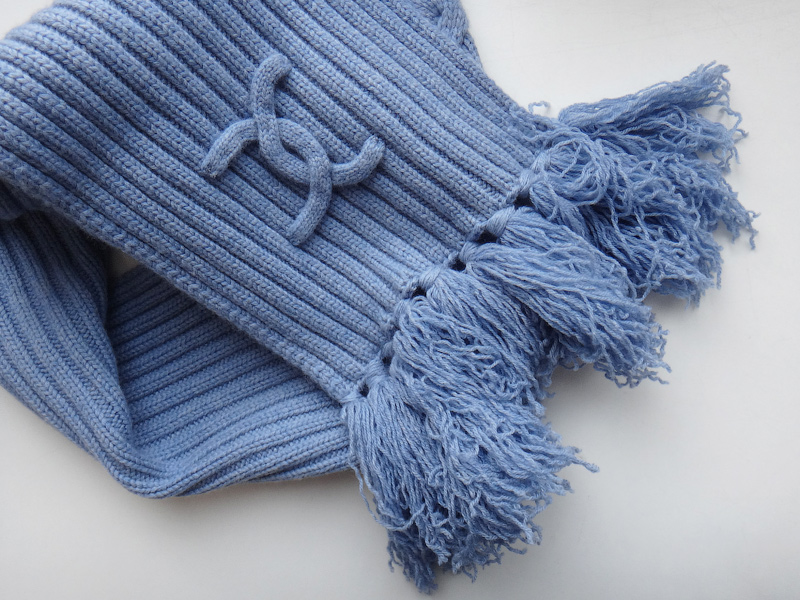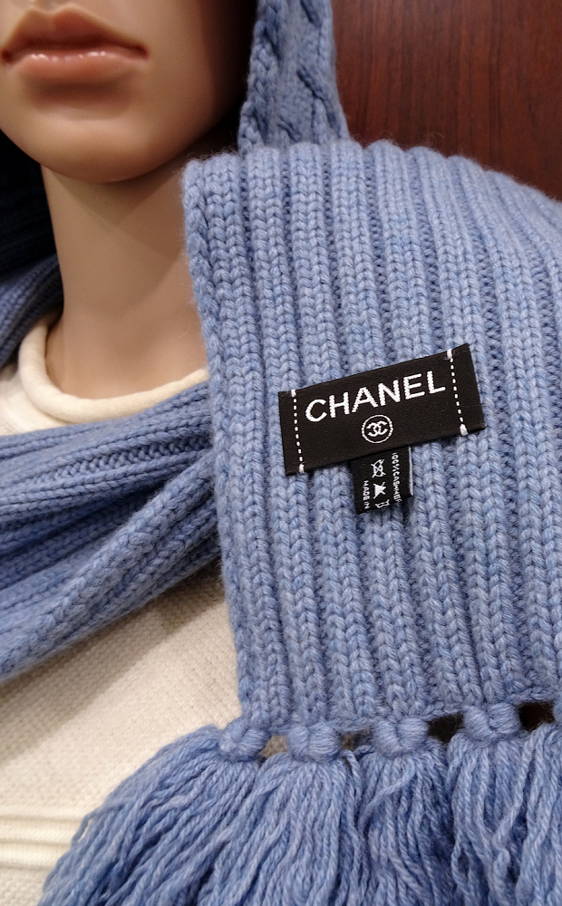 На одной части шарфа крупный логотип Chanel.