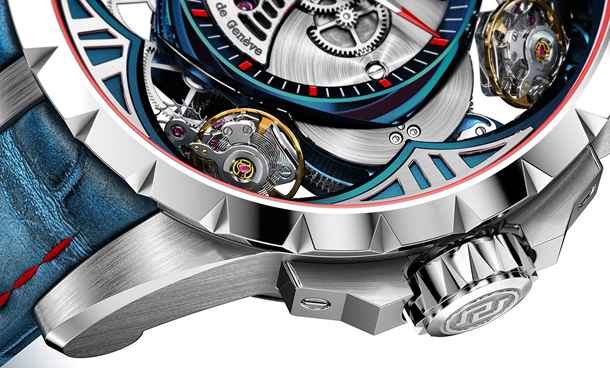 Размер корпуса из кобальта хрома составляет 48 х 18.38 мм, водонепроницаемость 50 метров. Механизм RD101 в часах Excalibur Quatuor Cobalt MicroMelt обладает уникальным голубым покрытием PVD на платине и мостах. Циферблат и периферия также покрыты цветным PVD. В дизайне часов используются серебристые и красные акценты, включая красную строчку нитями на синем ремешке из кожи крокодила. Застежка на ремешке изготовлена из титана. Цена новых часов Roger Dubuis Excalibur Quatuor Cobalt MicroMelt составляет 390 000 CHF, новинка выпущена ограниченной серией 8 штук.