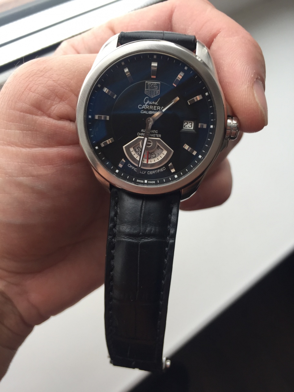 Элегантная мужская модель, оснащенный эксклюзивной системой индикации Rotating System. Система отображения показаний Grand Carrera Rotating System, вдохновленная гоночными болидами GT, заменяет традиционные стрелки дисковыми указателями, выполненными в стиле индикаторов на приборной доске автомобиля. В модели Grand CARRERA Calibre 6 система вращающихся дисков обеспечивает индикацию постоянной секундной стрелки. В положении «3 часа» находится окошко даты. хронометр C.O.S.C.