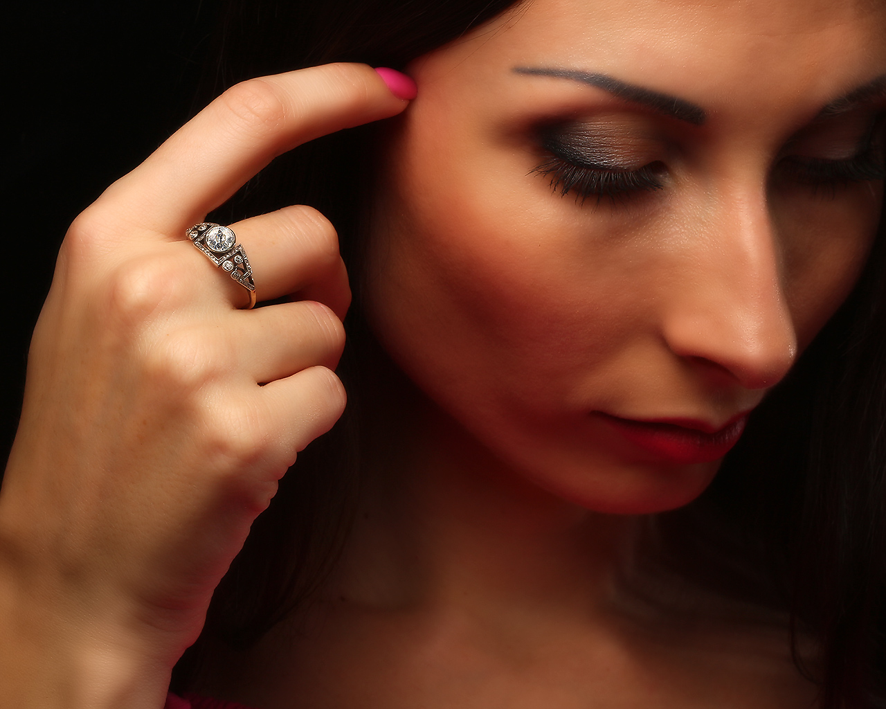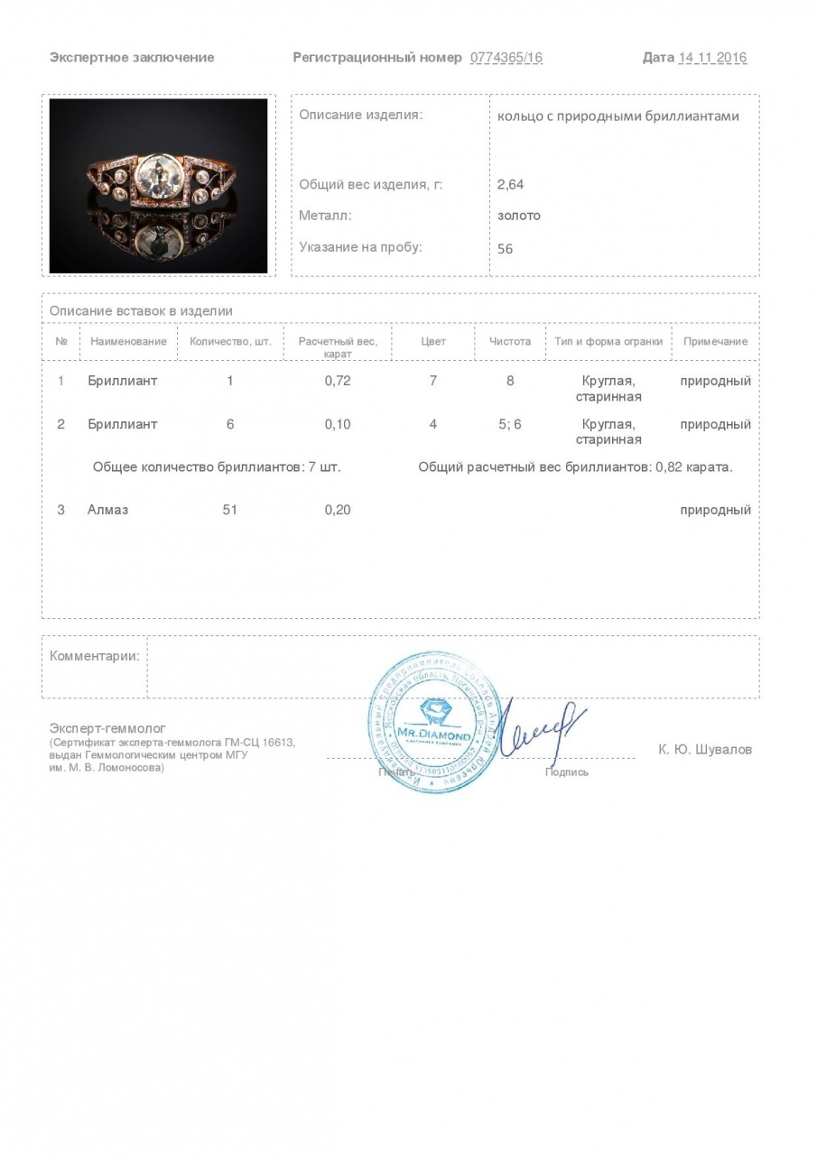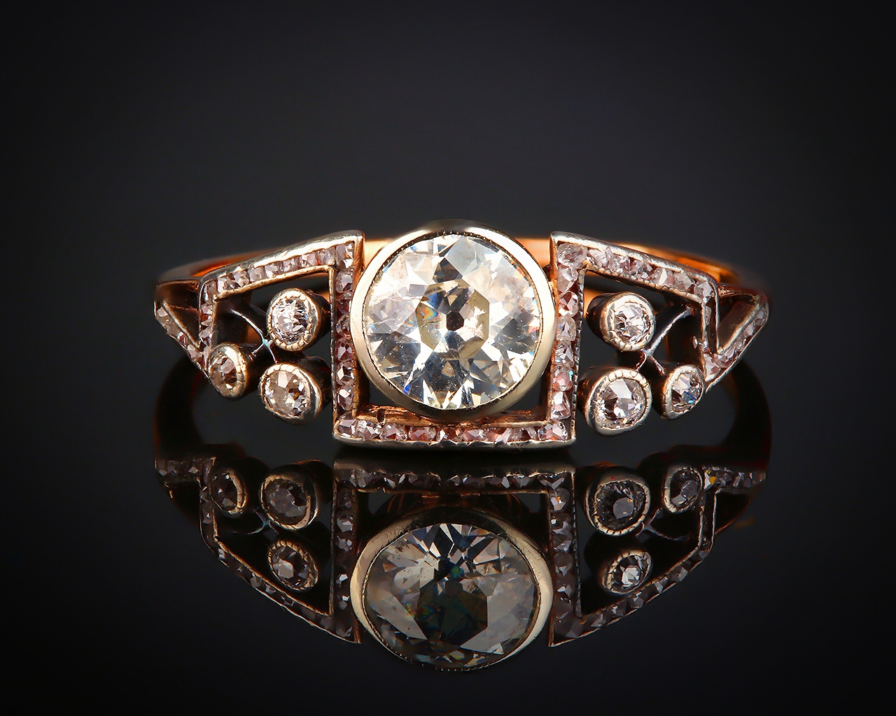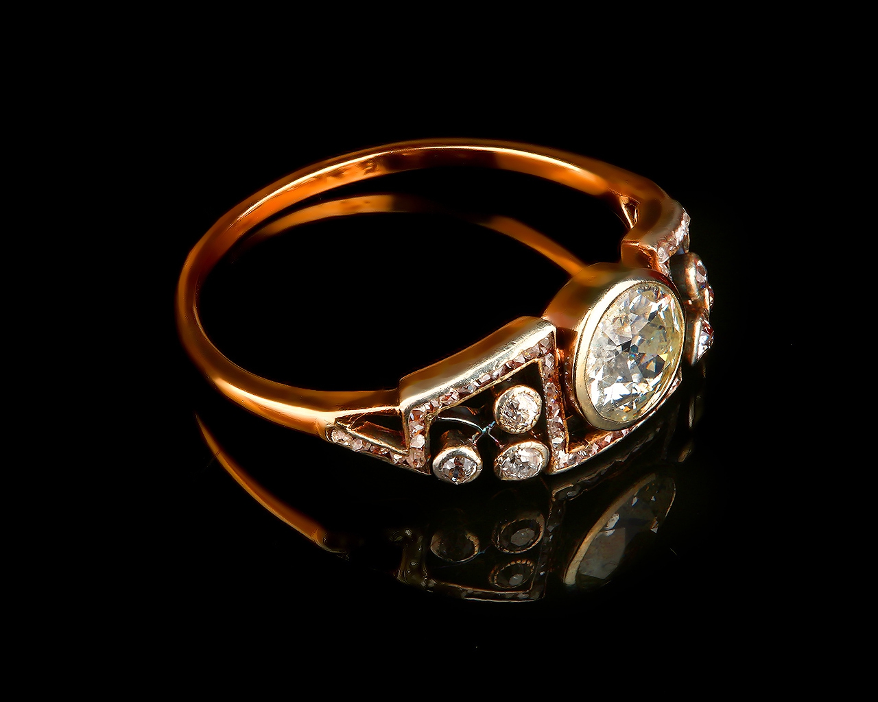 Старинное золотое кольцо с бриллиантами 1.02ct