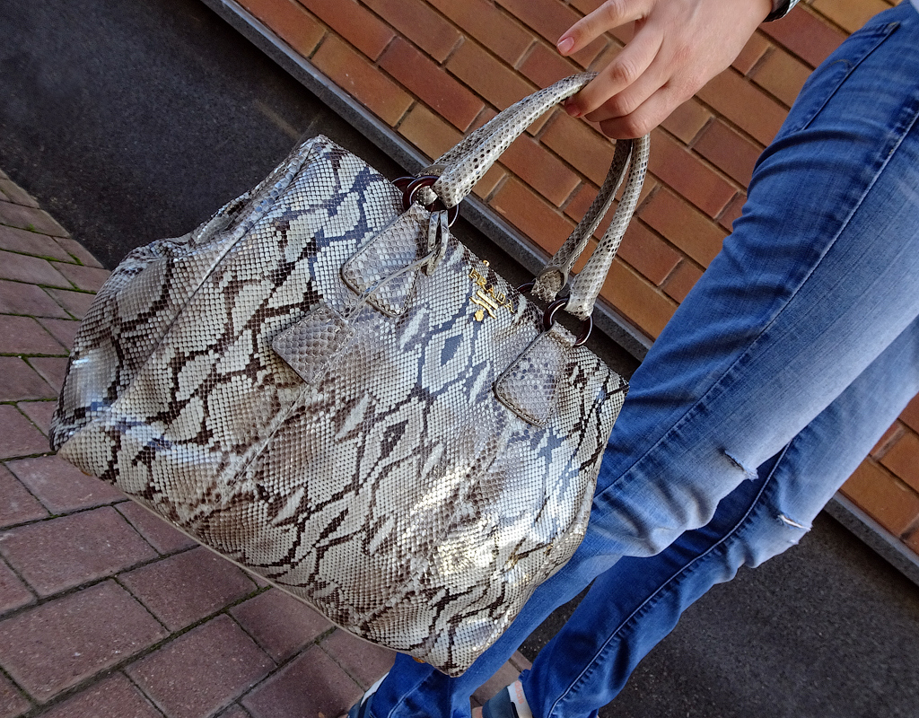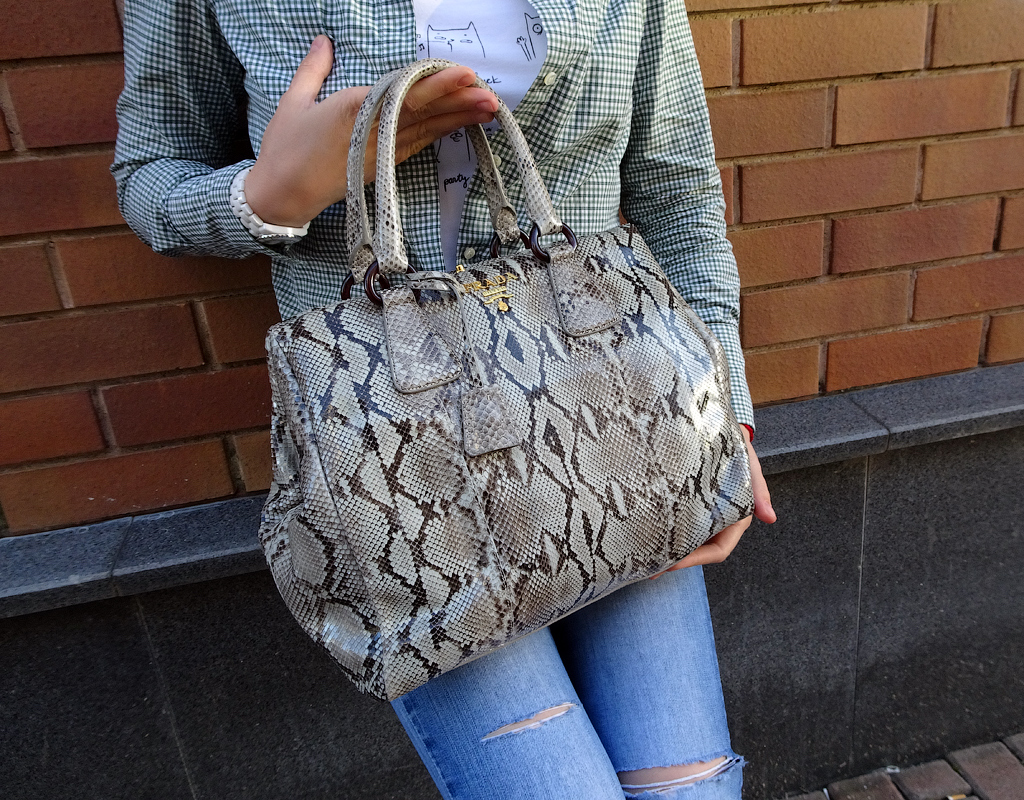 Великолепная сумка Prada премиум-класса в шикарной версии - из натуральной кожи питона.