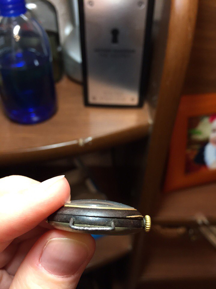 Разбираясь у бабушки в квартире, нашел эти часы. Без ремешка. Секундная стрелка стоит. Видимо заведены до предела, но не ходят, к сожалению. Если потрясти, то секундная передвигаться начинает на несколько делений сама.