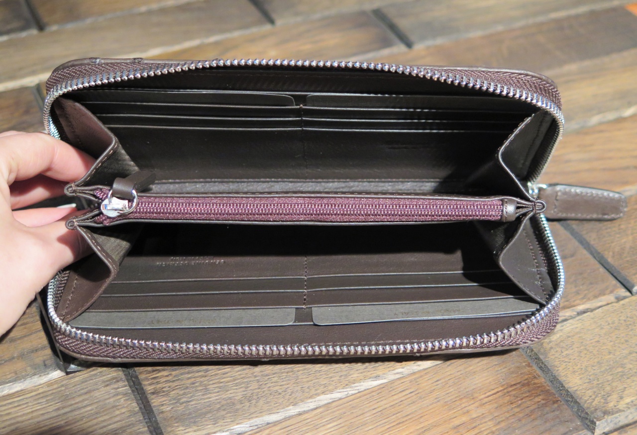 Внутри клатч отделан телячьей кожей темно-коричневого цвета.