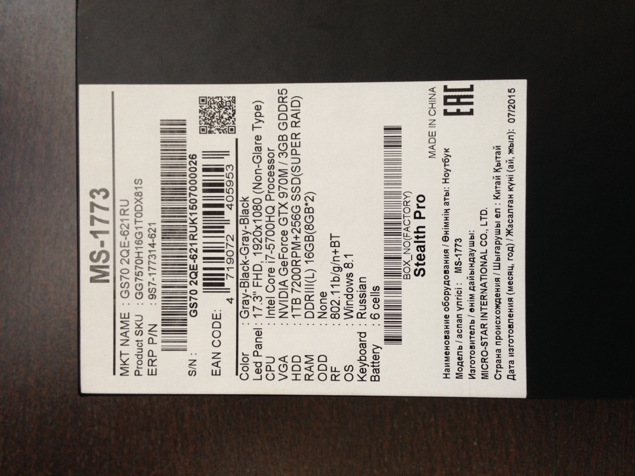 После приобретения у официалов MSI была произведена замена Wi-Fi модуля(с intel wireless-n 7260 на Killer Wireless-N 1202) более стабильное Wi-Fi соединение. Не каких повреждений. В полной комплектации.