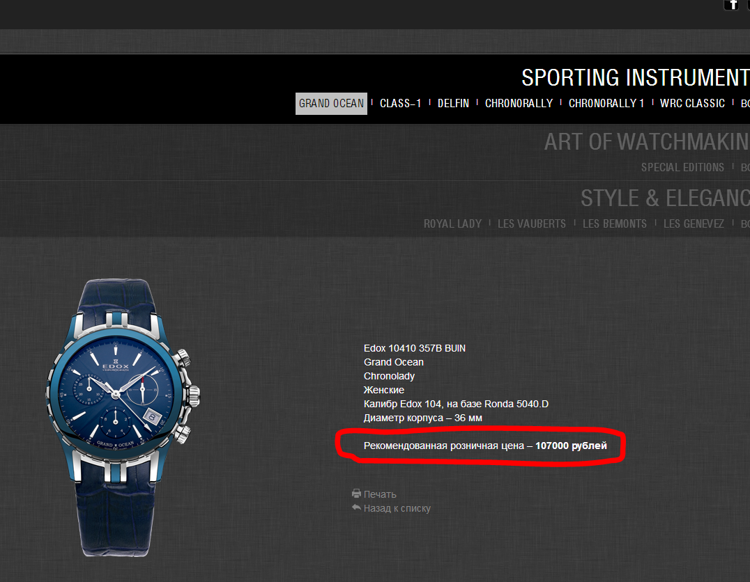 Описание на официальном сайте: http://www.edox.ru/model/10410+357B+BUIN