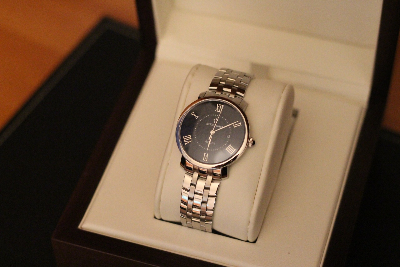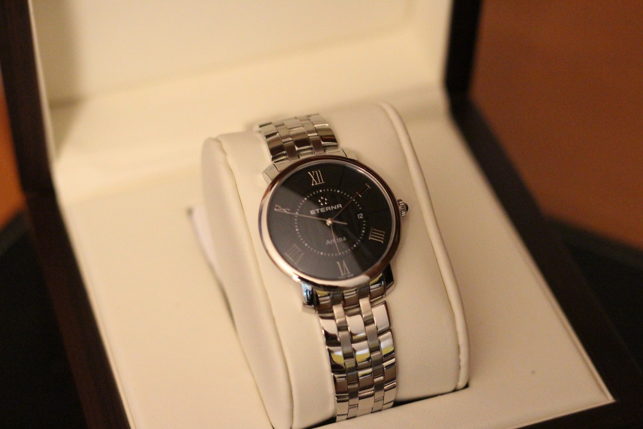 Прекрасные женские часы от Eterna на стальном браслете! Коллекция Artena. Изящный корпус в 33 мм слегка изогнутой формы "подушки" -идеально для женской руки. Настоящая Швейцария за разумные деньги. Черный циферблат с гильоше и римские цифры - очень нарядно.