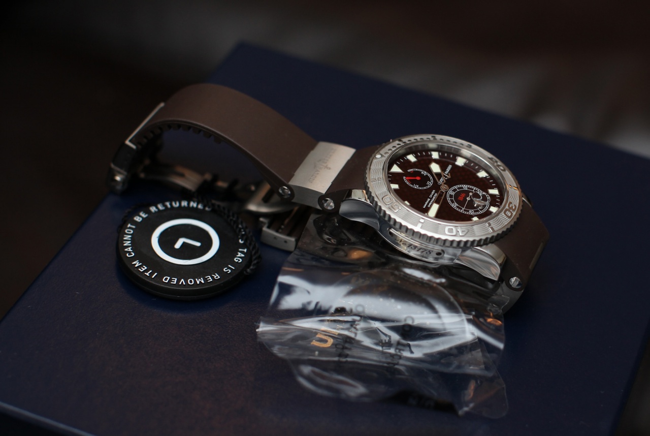Часы новые, в плёнках. Куплены 3 недели назад в США. Гарантия Jomashop 2 года. Часы оказались великоваты на руке, посему и продаю. Цена равна понесённым затратам! Очень красивый, насыщенный коричневый цвет. Модель найти новую достаточно сложно в настоящее время.