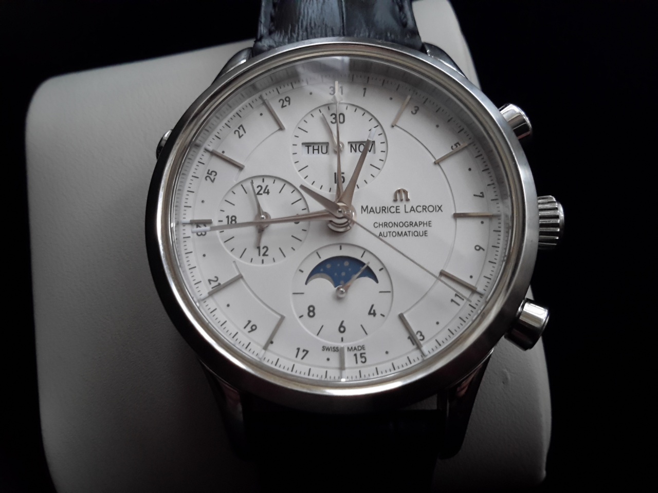 Les Classiques Chronograph Phases de Lune поддерживают ряд функций,выраженных в четкой и ясной форме.Это идеальный инструмент для оптимальной организации своего времени.Завораживающе выглядит индикация фаз луны.