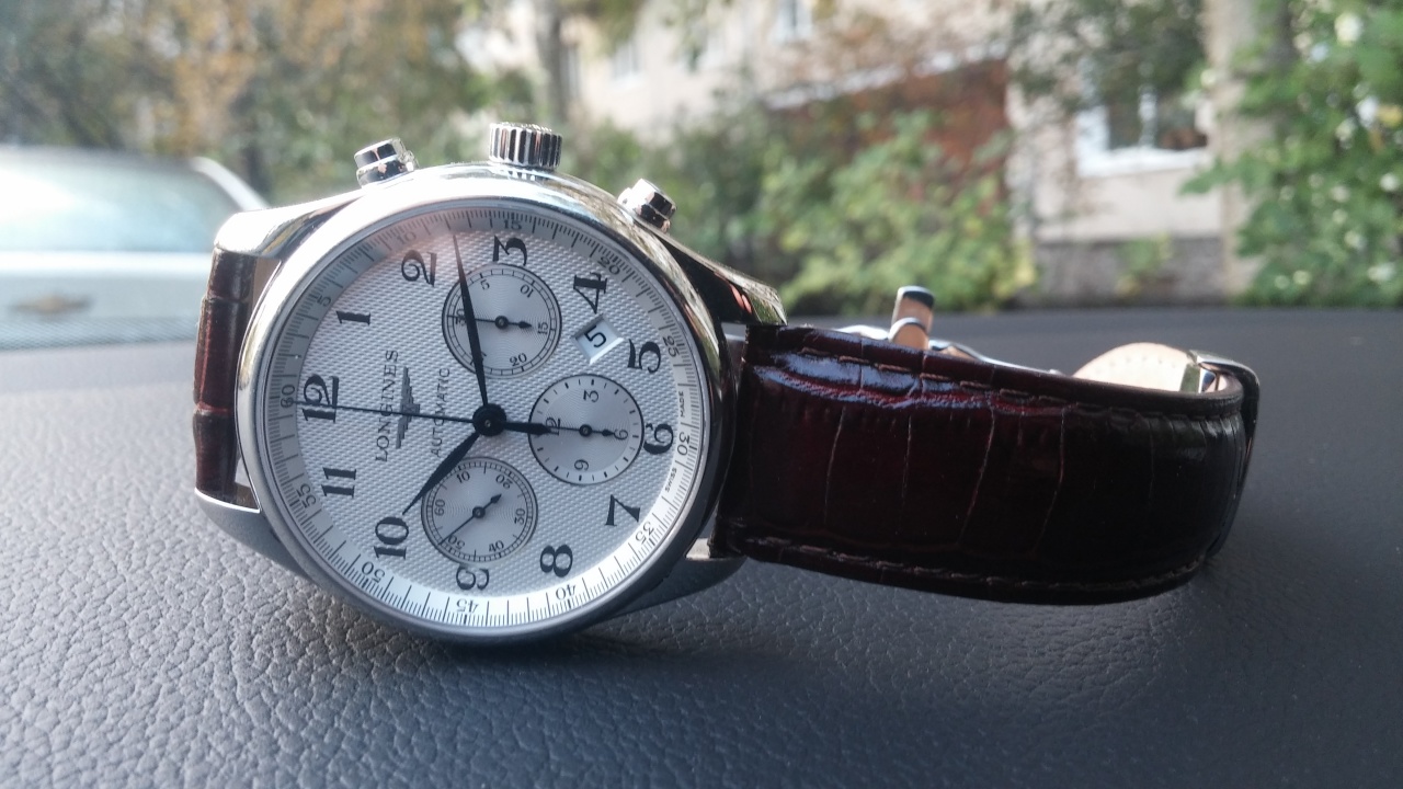 Продам замечательный узнаваемый экземпляр Longines Master Collection L2.759.4.78.3. В отличном внешнем и техническом состоянии. Хотя не критичные следы от носки конечно же есть. Посторался отразить на фото. Полный комплект. По вменяемой цене.Хроногроф с автоподзоводом и колонным колесом. Замечательный зерненый циферблат и переливающиеся вороненые стрелки. Диаметр 42 им. Запас хода 54 ч. Водозащита 3 атм. Более полную информацию по часам легко найти в интернете. Есть один минус. Стоит не оригинальный ремень.Данная модель одна из самых дорогих в линейке Longines. Цена в салонах 177 т.р. На все вопросы отвечу в личке. Пересыл без проблем куда угодно.