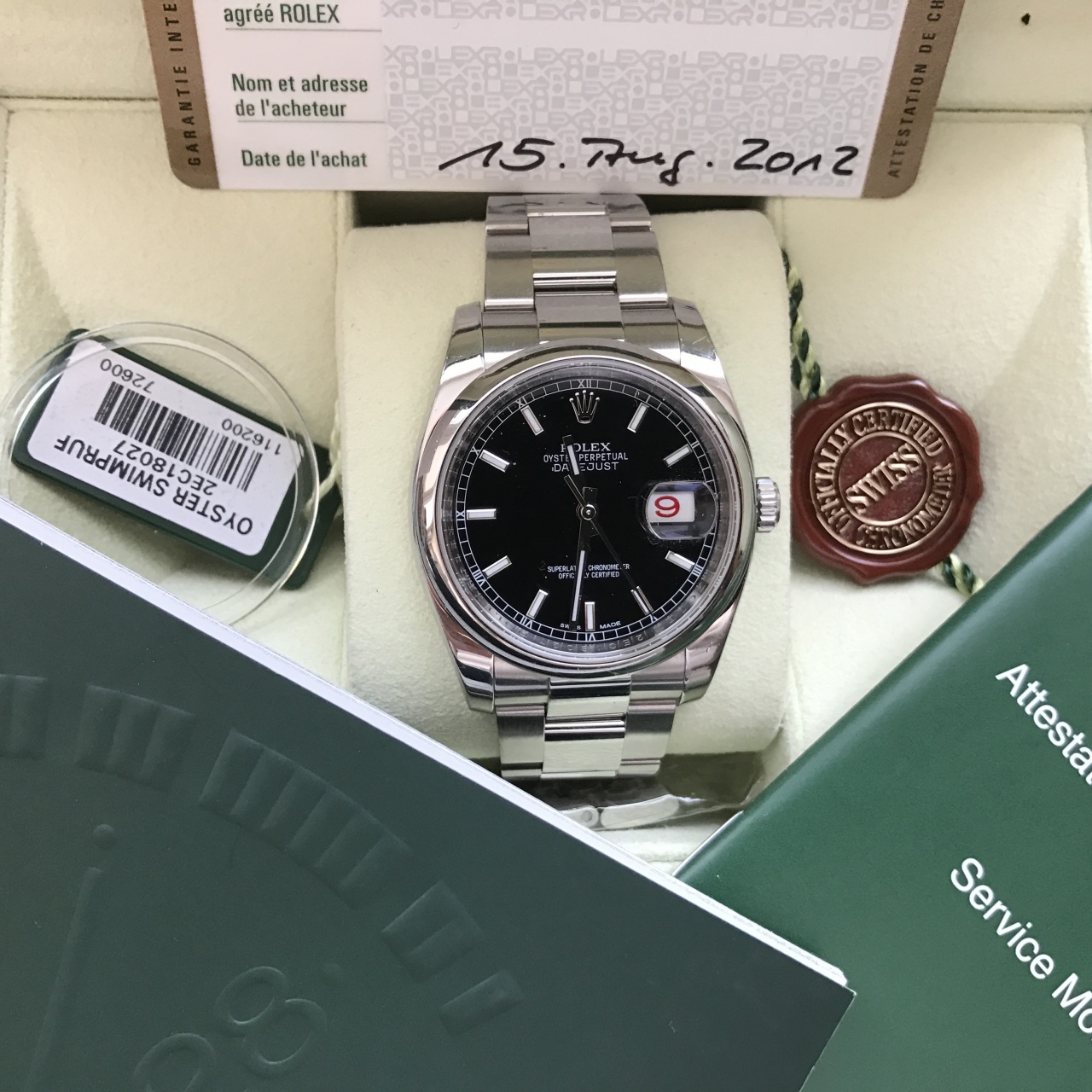 Продам в Москве Rolex Datejust 116200, 36мм. Это вечная класика! На запястье от 16,5 до 18,5 часы смотрятся идеально, сердце часов - славная машина 3135, проверенная десятилетиями. Часы куплены в германии и сделаны специально для внутреннего немецкого рынка, идут практически в ноль. Это часы для тех кому важен статус, а не размер. Спекулянтам, просьба не беспокоить.