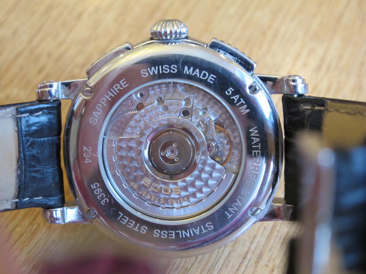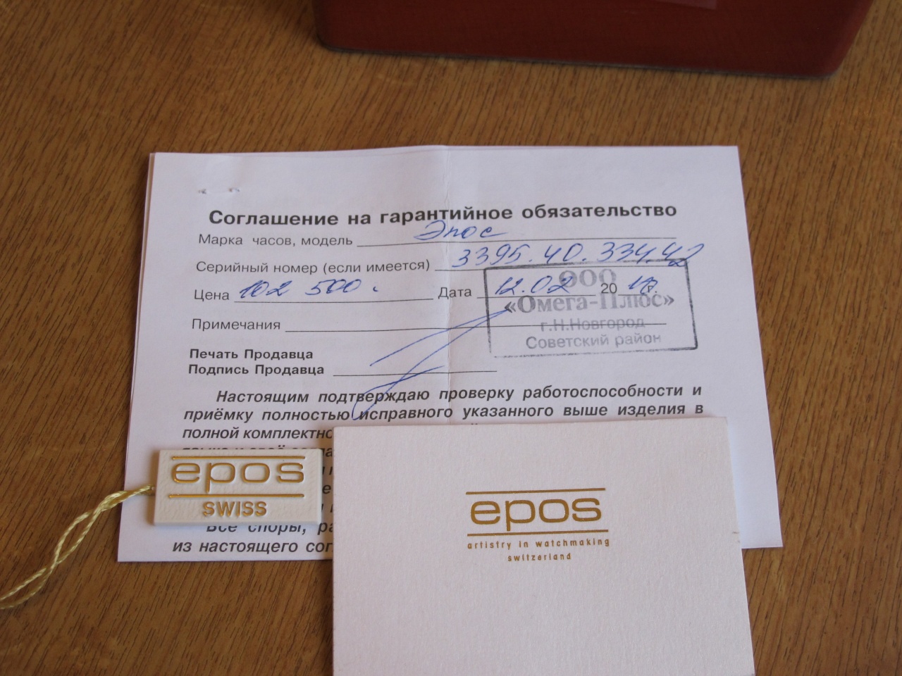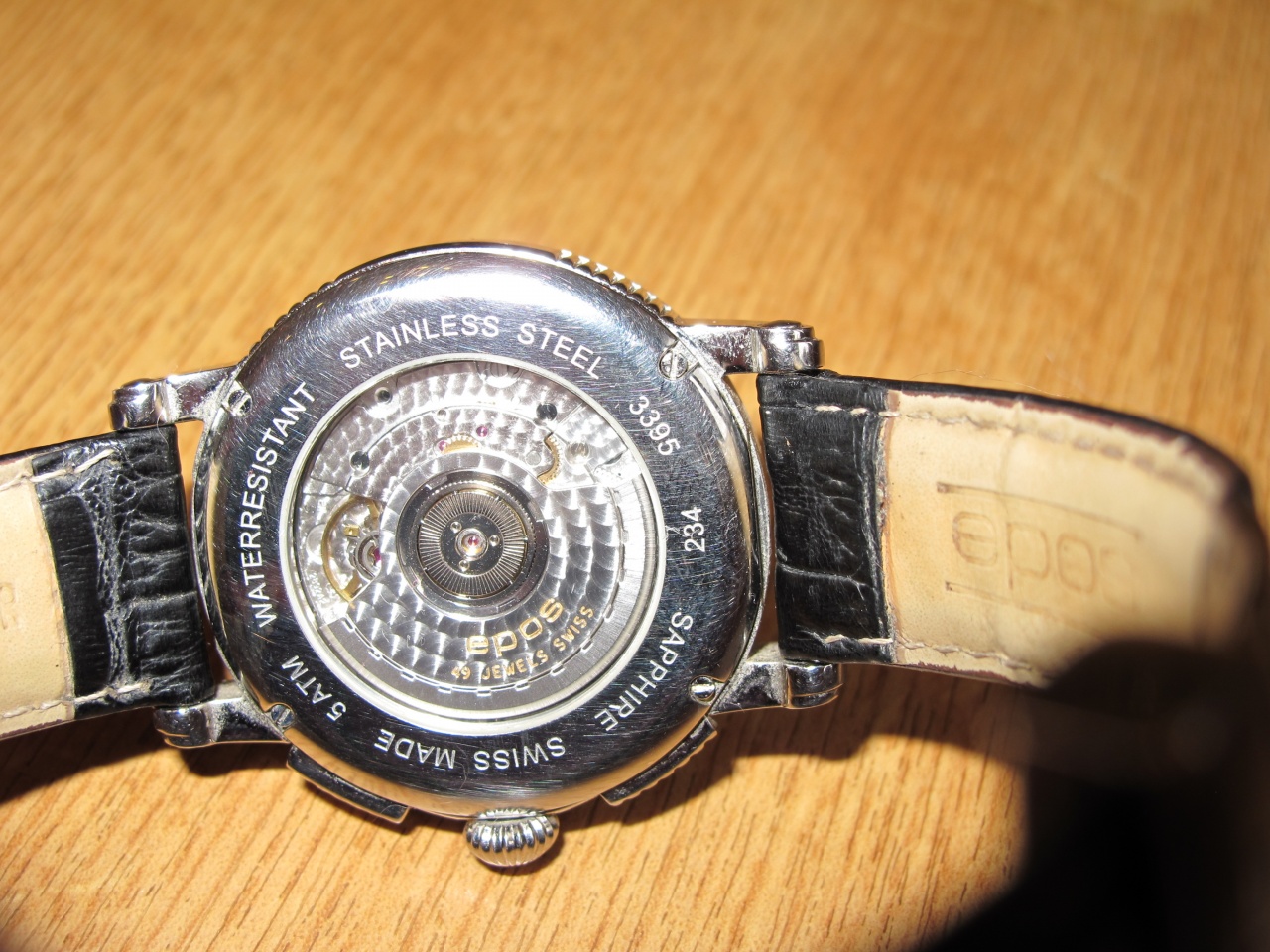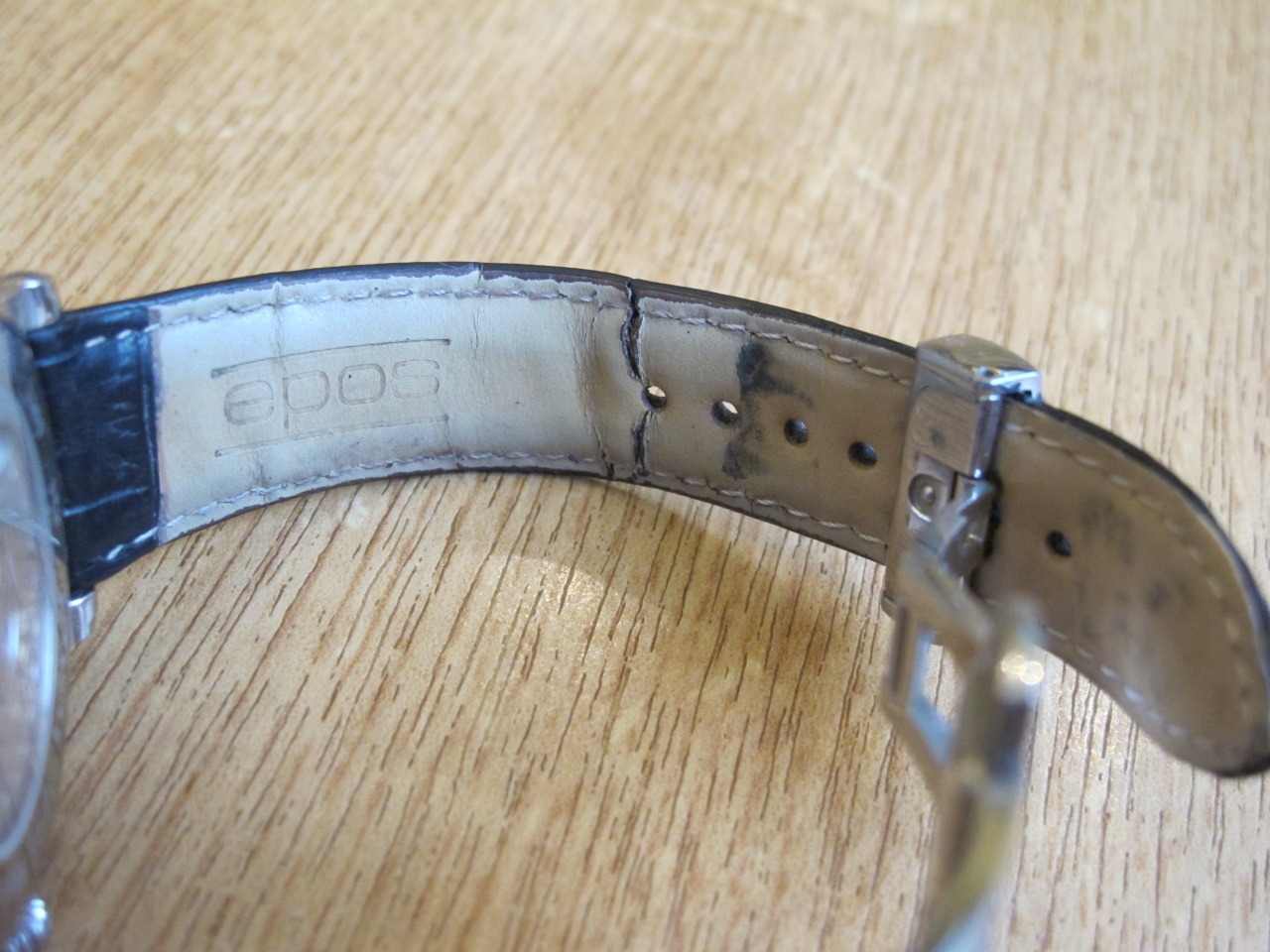 Продаю часы Epos 3395.40.334.42 оригинал в нерабочем состоянии. Куплены в салоне "Женева" в 2010 г. Носились редко. т.к. есть другие часы. В последнее время часы стали плохо держать заводку от движения руки, заметно уменьшился запас хода. Сейчас от движения совсем не заводятся, только заводной головкой и то не на долго. Внешнее состояние корпуса близко к идеальному: стекло(сапфир) без царапин и сколов, на корпусе нет следов носки(потертостей, царапин), заметных невооруженным глазом. Ремешок под замену-на одной половине заметная трещина с внутренней стороны(предпоследнее фото).
