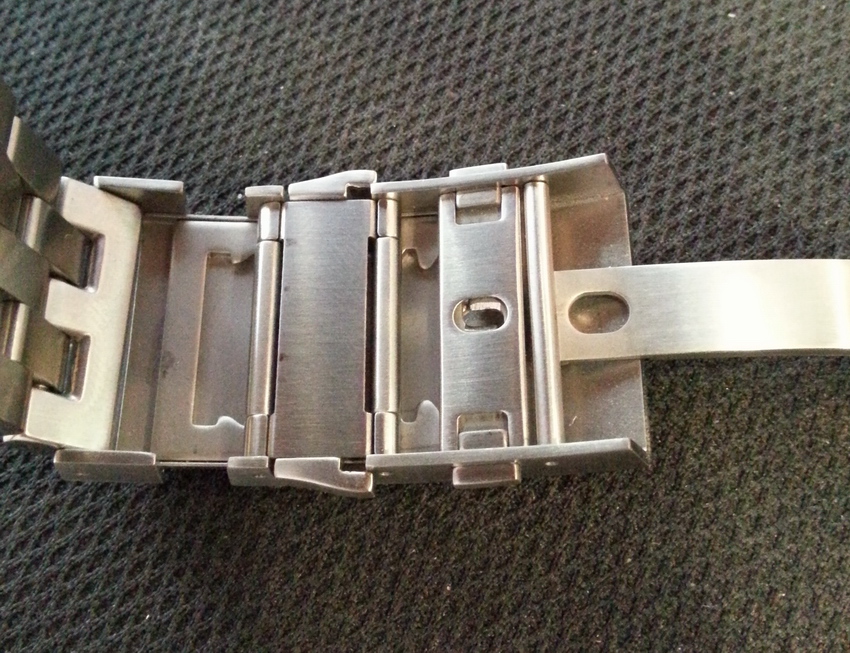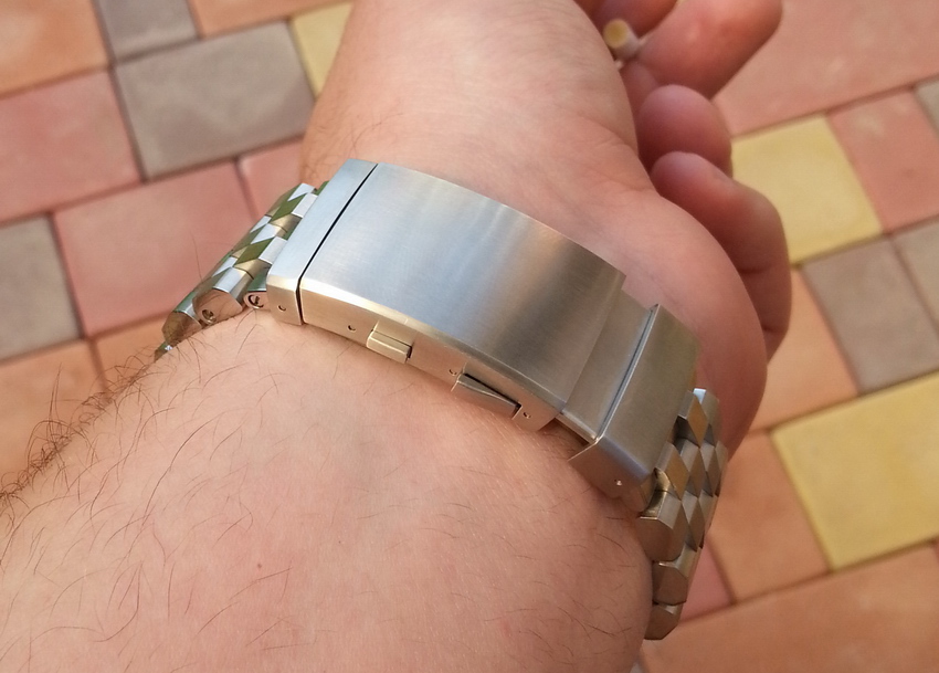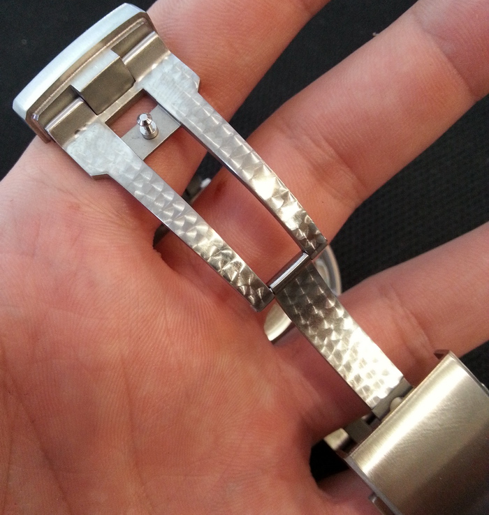 Звенья ровные, без заметных завалов. Полностью сатинированные, полированные только внешнего торца, это хорошо сочетается с почти полностью сатинированной туной.