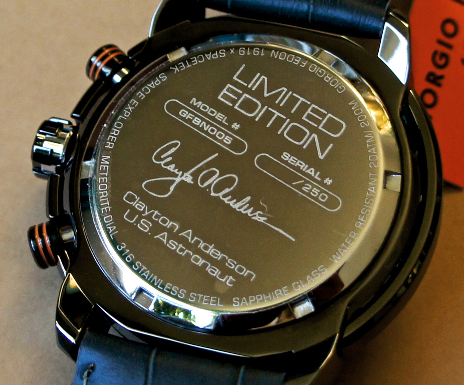 На задней крышке гравировка подписи астронавта NASA Клейтона Андерсона учавствовшего в полете Дискавери и экспедиции МКС.