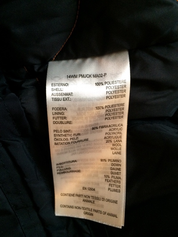 Подкладка: (100% Polyester) прочная и плотная двойная подкладка из полиэстера препятствует проникновению перьев из утепляющего слоя.