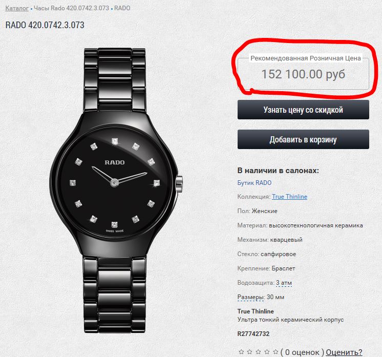 [Женские] RADO True Thinline R27742732. Кварц / Черная керамика / Браслет / 12 бриллиантов - Часовой форум Watch.ru