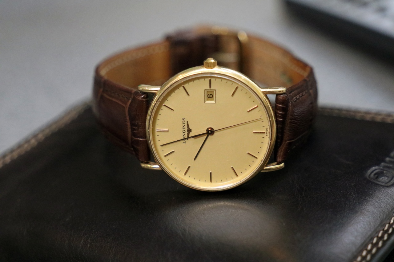 Классические Longines, кварцевые, желтое золото 750 пробы, 18 kt, родная бакля, размеры - приблизительно 33 мм., без заводной головки, сапфир, у меня с 90-го года, пару раз обслуживались, никаких технических проблем, одевались очень редко. Цена условная, в приоритете обмен на механику 40-44 мм., с доплатой в обе стороны.