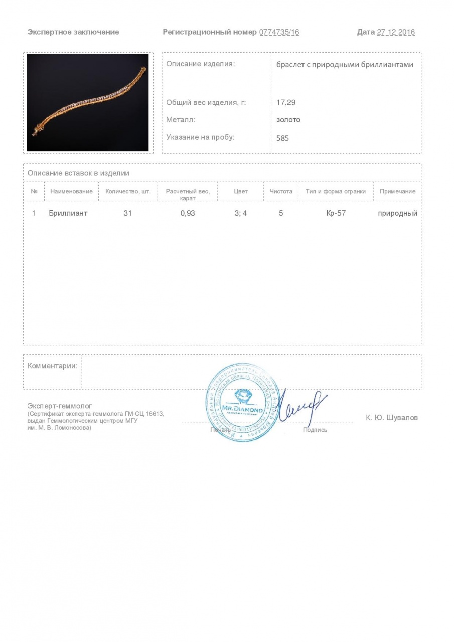 Шикарный золотой браслет с бриллиантами 0.93ct