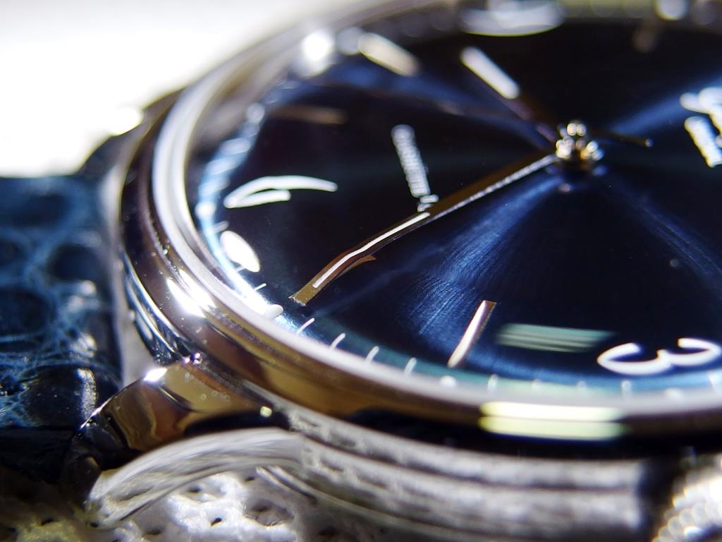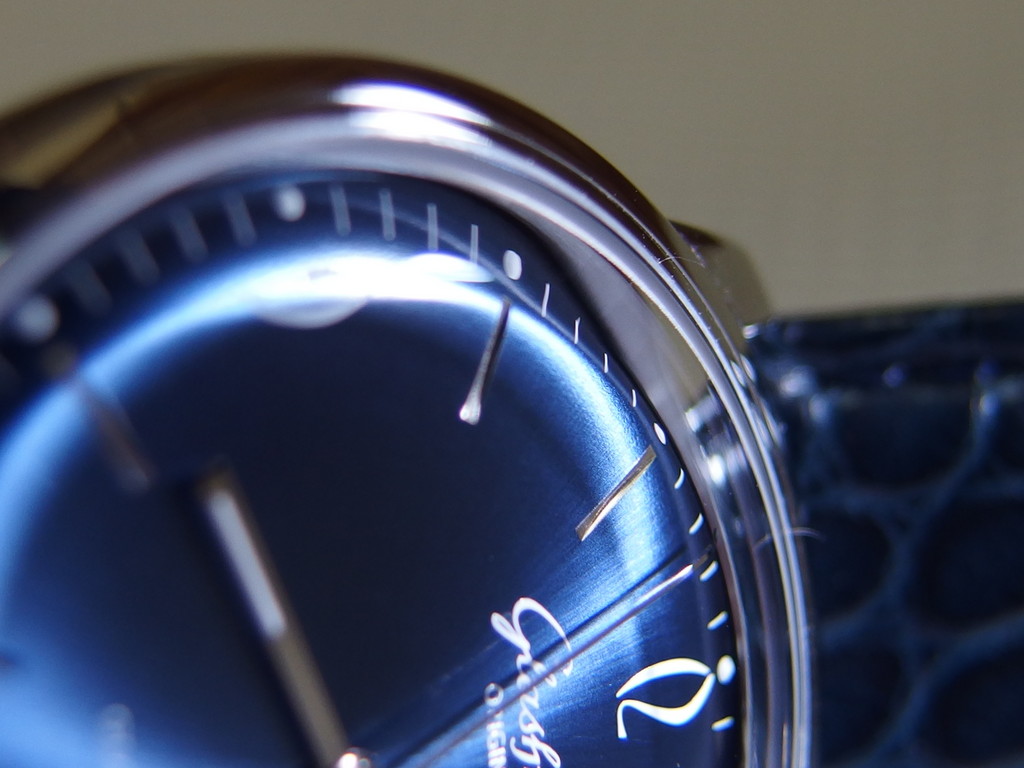 Сами часы имеют размерность 39 мм на 9.4 мм, купольные сапфировые стекла спереди (с двойным антибликом) и сзади, открывающие вид на циферблат глубокого синего цвета (midnight blue /Royal NAVY blue) с отделкой "Солнечные лучи" (Sunburst)